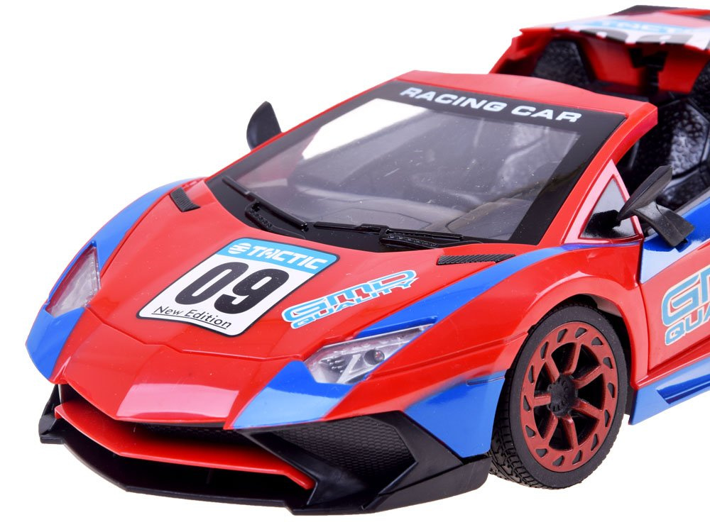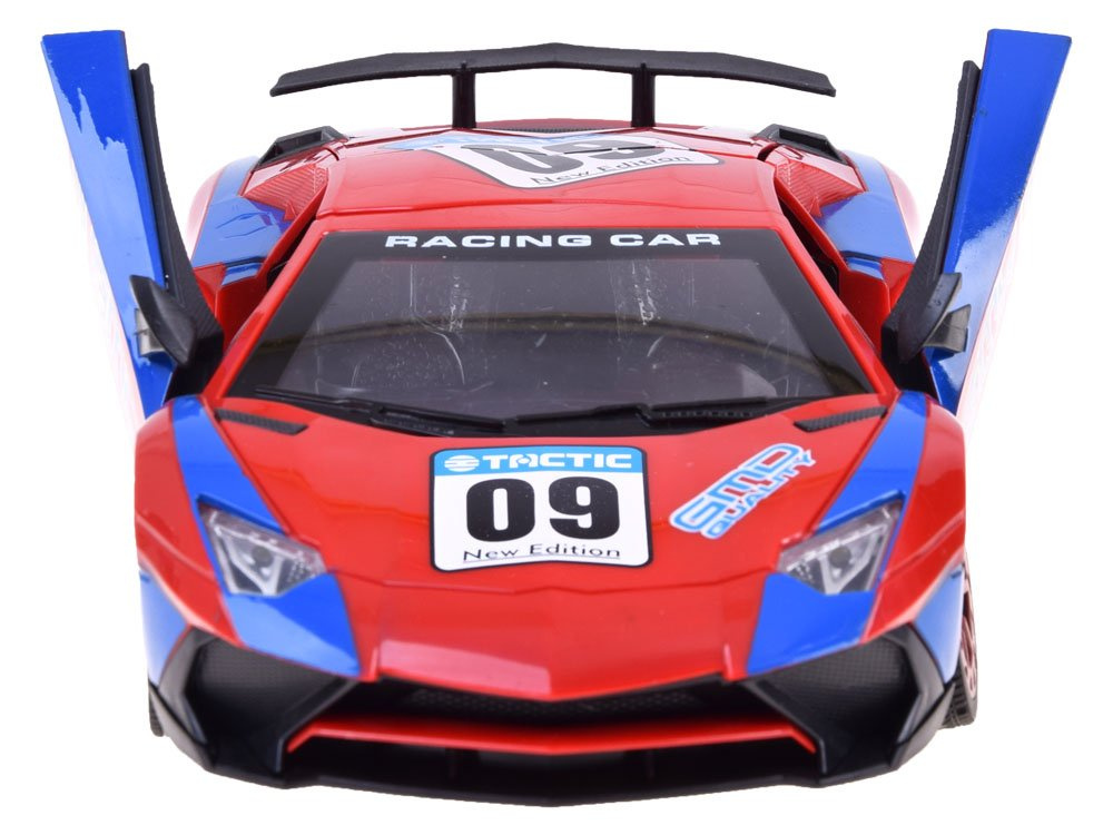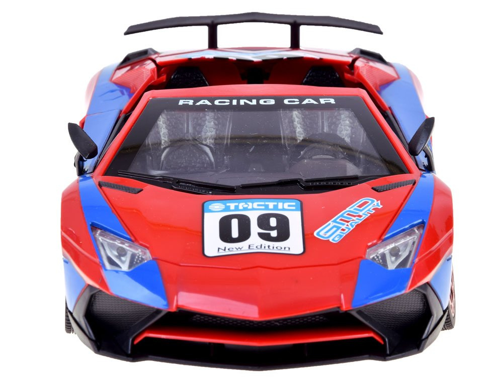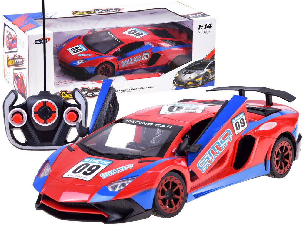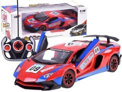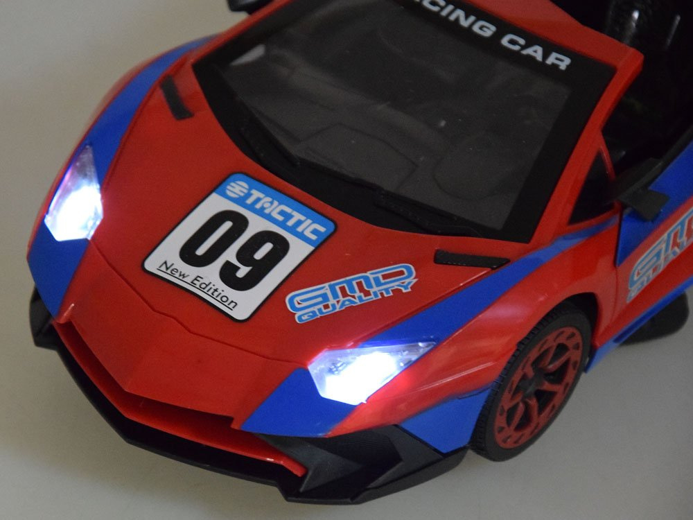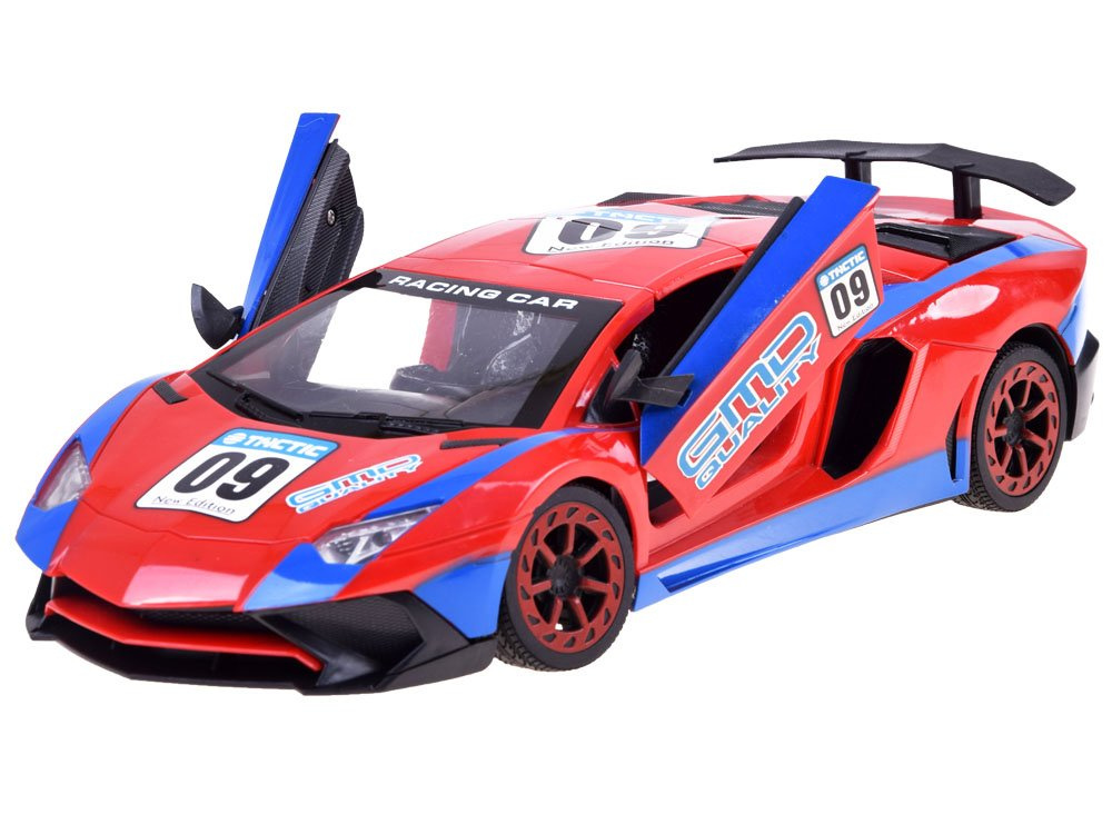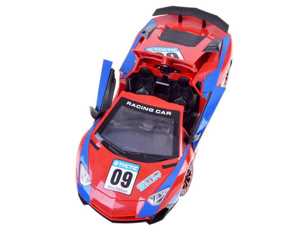 Super cool sportovní auto na dálkové ovládání pro malé řidiče rallye. Autíčko se ovládá dálkovým ovladačem a jezdí dopředu, dozadu, doprava a doleva. Pomocí dálkového ovládání může dítě také otevírat dveře a střechu vozidla. Vůz v nápadné červené a modré barvě má sportovní siluetu, pneumatiky s gumovým vzorkem a světelné efekty aktivované během jízdy. Celé vozidlo je vyrobeno z robustního plastu. Celá věc se ovládá dálkovým ovladačem s gumovou anténou.