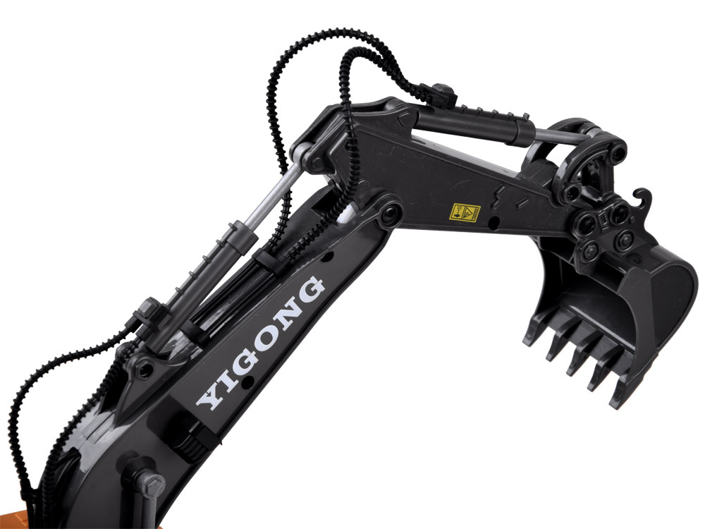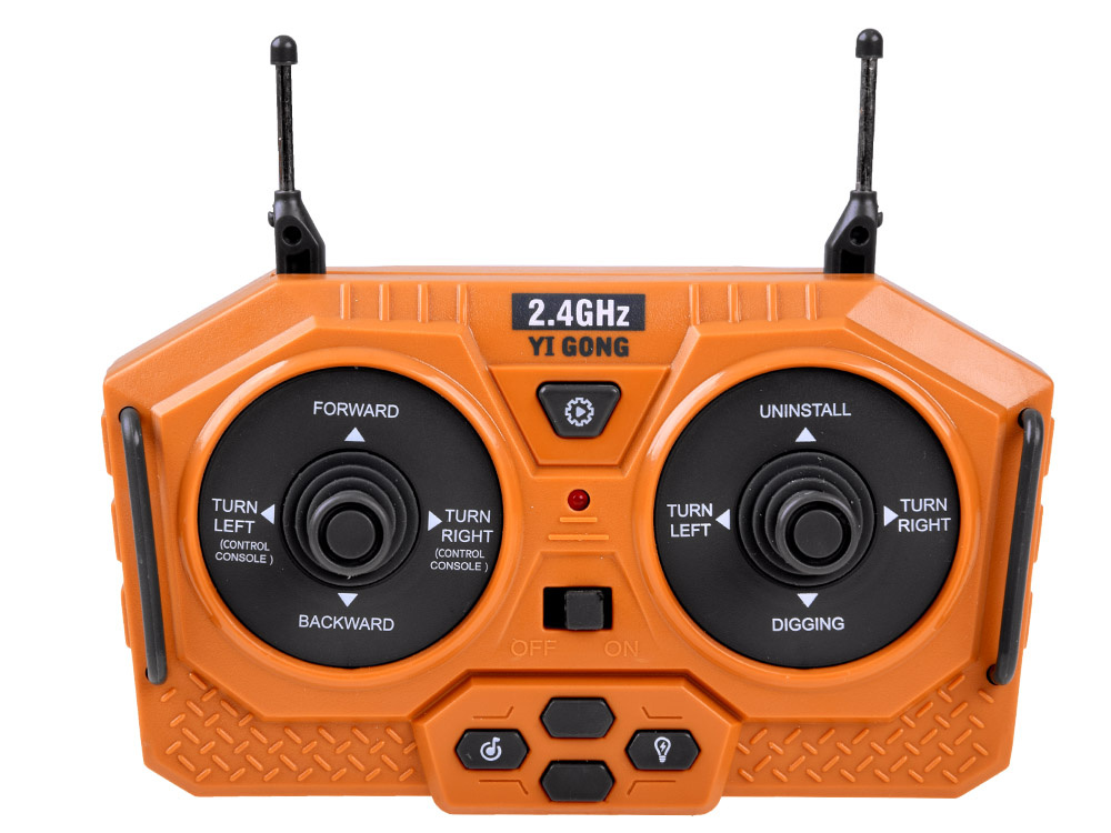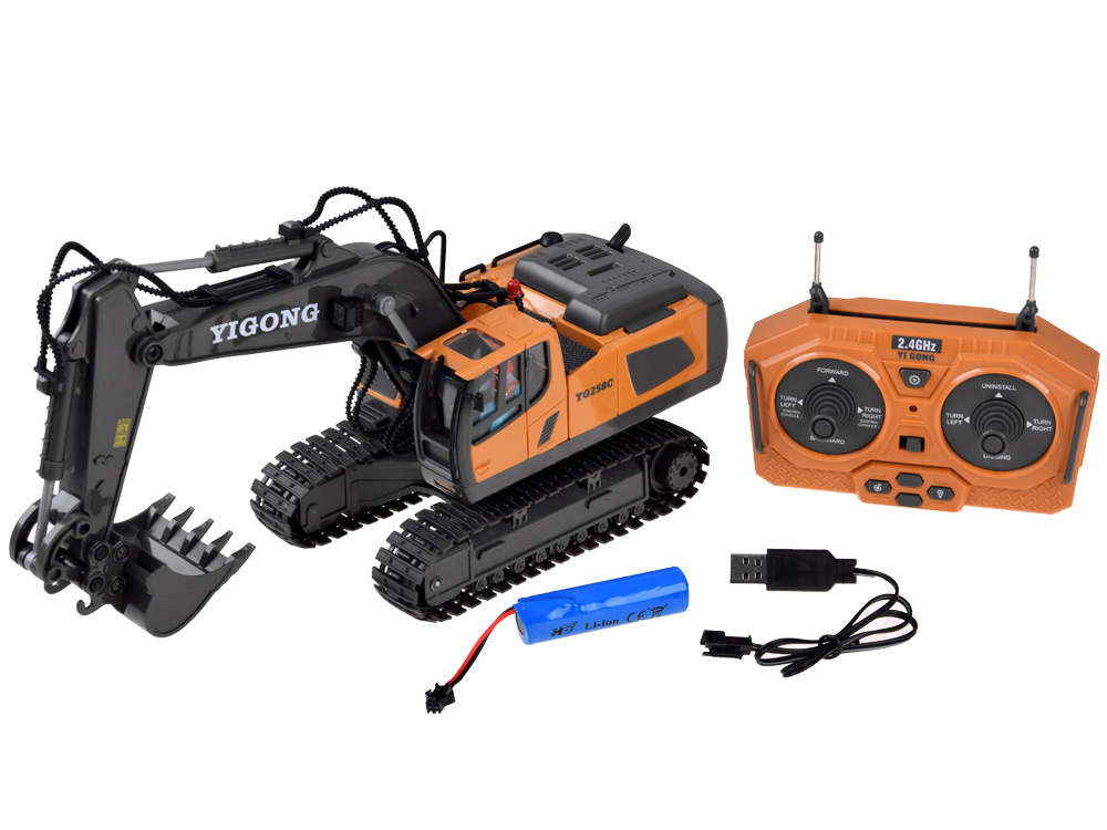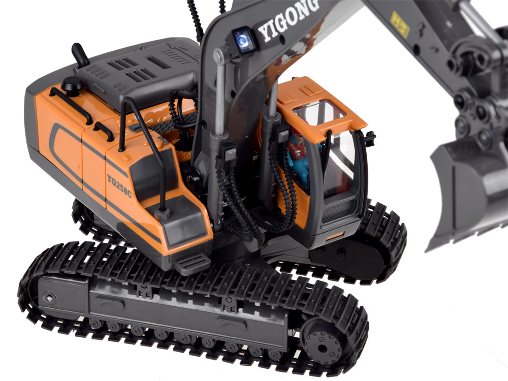 Hračka z plastu s pohyblivým kbelíkem a gumovými pásy.Hračka obohacená o zvukové efekty: chod motoru, světelný efekt. Dálkový ovladač je zodpovědný za ovládání lžíce nahoru a dolů. Rypadlo jede dopředu dozadu, zatáčí doprava, doleva. Hra s takovou hračkou umožní každému malému dítěti zažít vynikající zábavu.