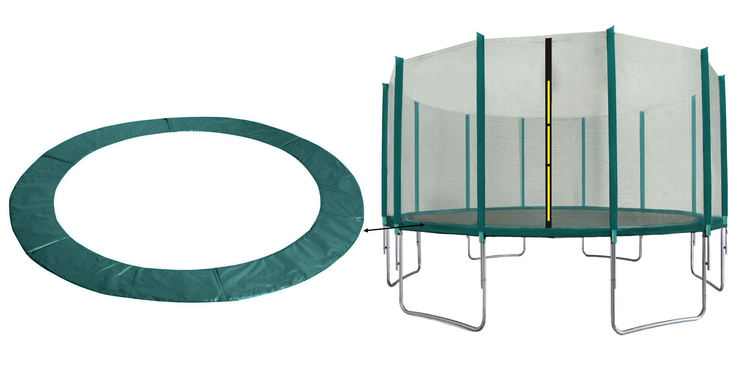 Ochranný kryt pružin (polstrovaný obvodový pás) slouží především k dosažení maximální možné bezpečnosti při používání Vaší trampolíny.