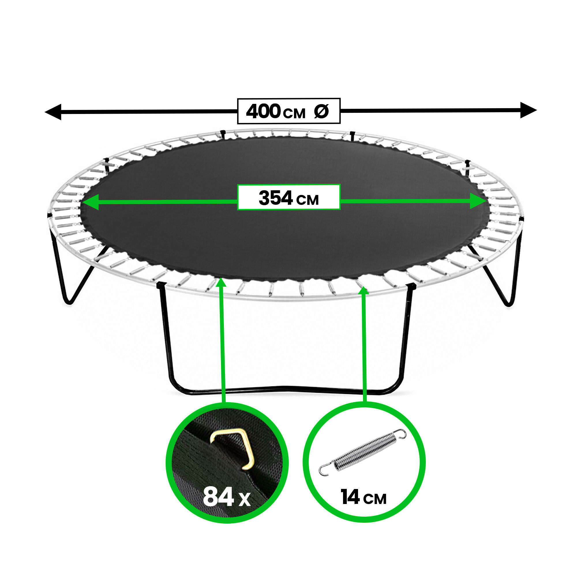 Náhradní odrazová plocha na trampolíny o velikosti 400 cm na 84 oček.