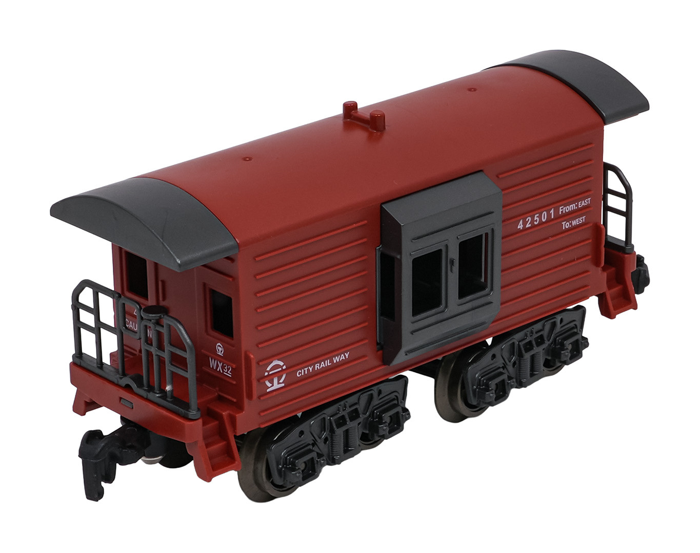 | Rozměry | - lokomotiva cca. 24,2 cm x 5,4 cm x 8,8 cm, - osobní vůz ok. 30 cm x 7 cm x 4,5 cm, - vagón s uhlím cca. 16 cm x 7 cm x 5 cm, - vůz pro zvířata cca. 13 cm x 6,5 cm x 4,5 cm, - trasa dráhy cca. 216 cm x 92,5 cm, - opakování cca 45 cm x 9 cm x 27,5 cm. |