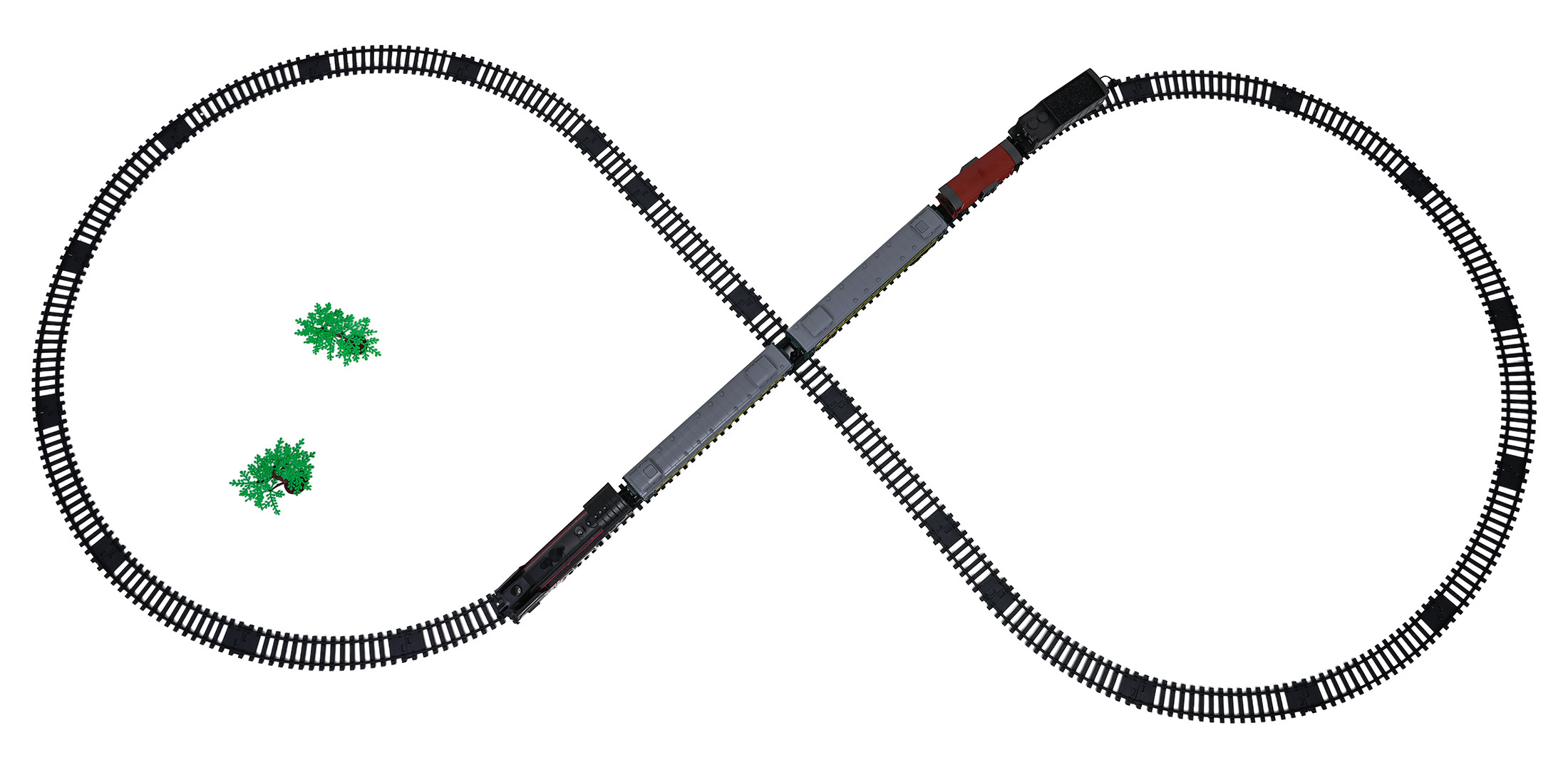 Funkce sady: - vhodné pro děti od tří let, - kouř vycházející z komína lokomotivy a po jejích bocích, - vláček jezdí dopředu, dozadu, - reflektor zepředu lokomotivy, - zvuky jízdy, - možnost vypnutí zvuků lokomotivy. |