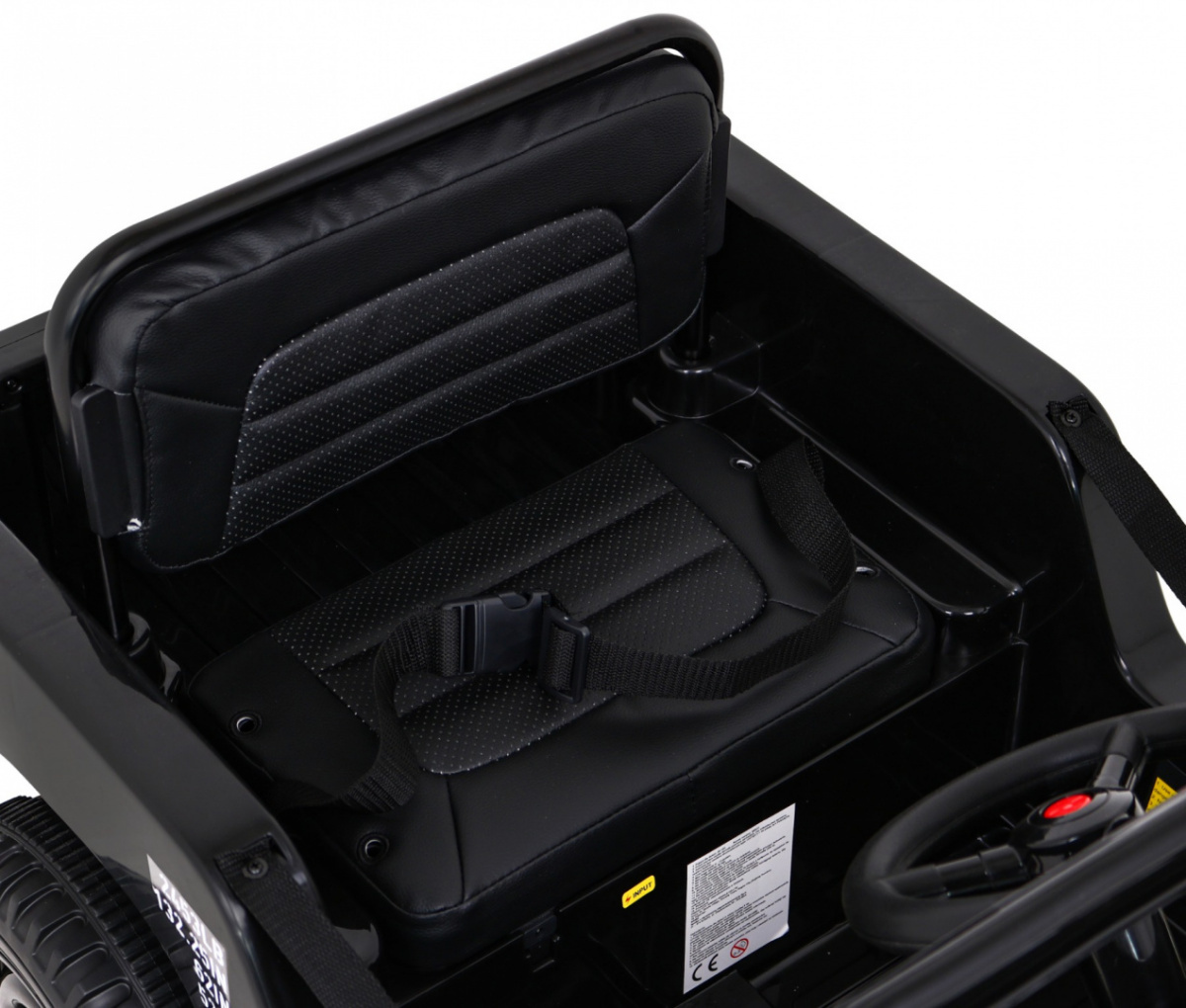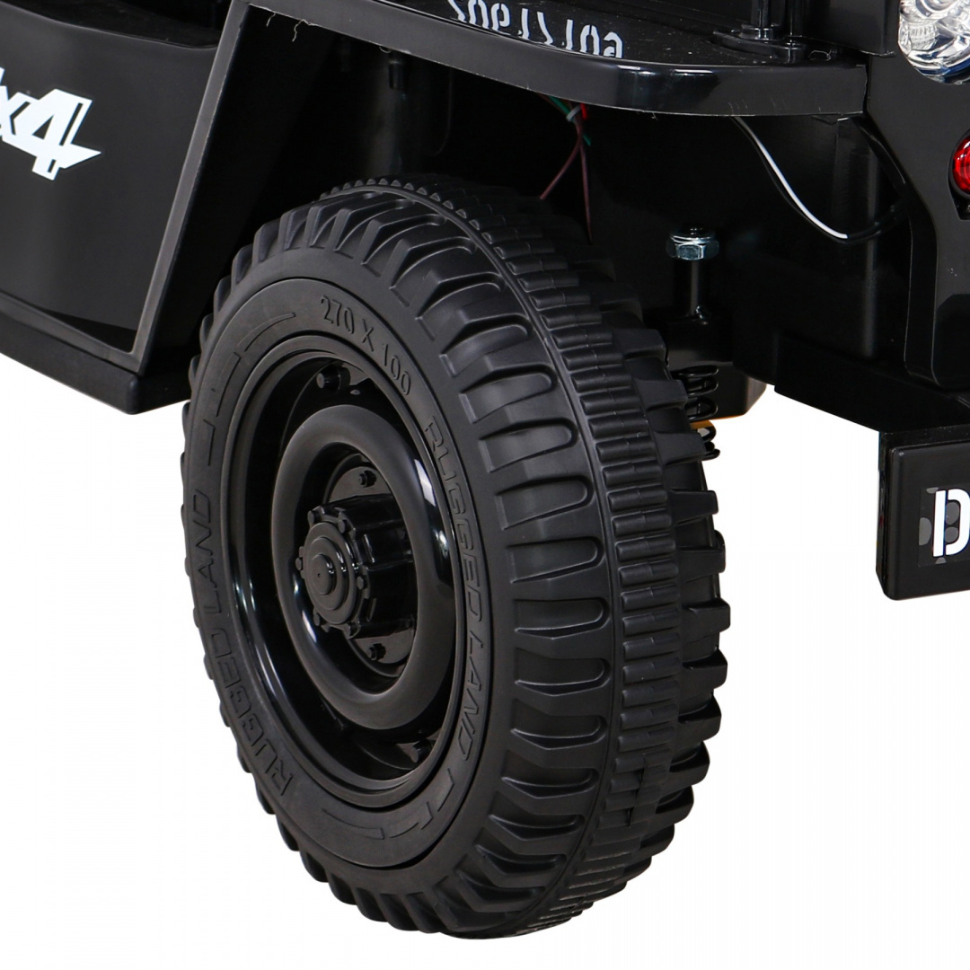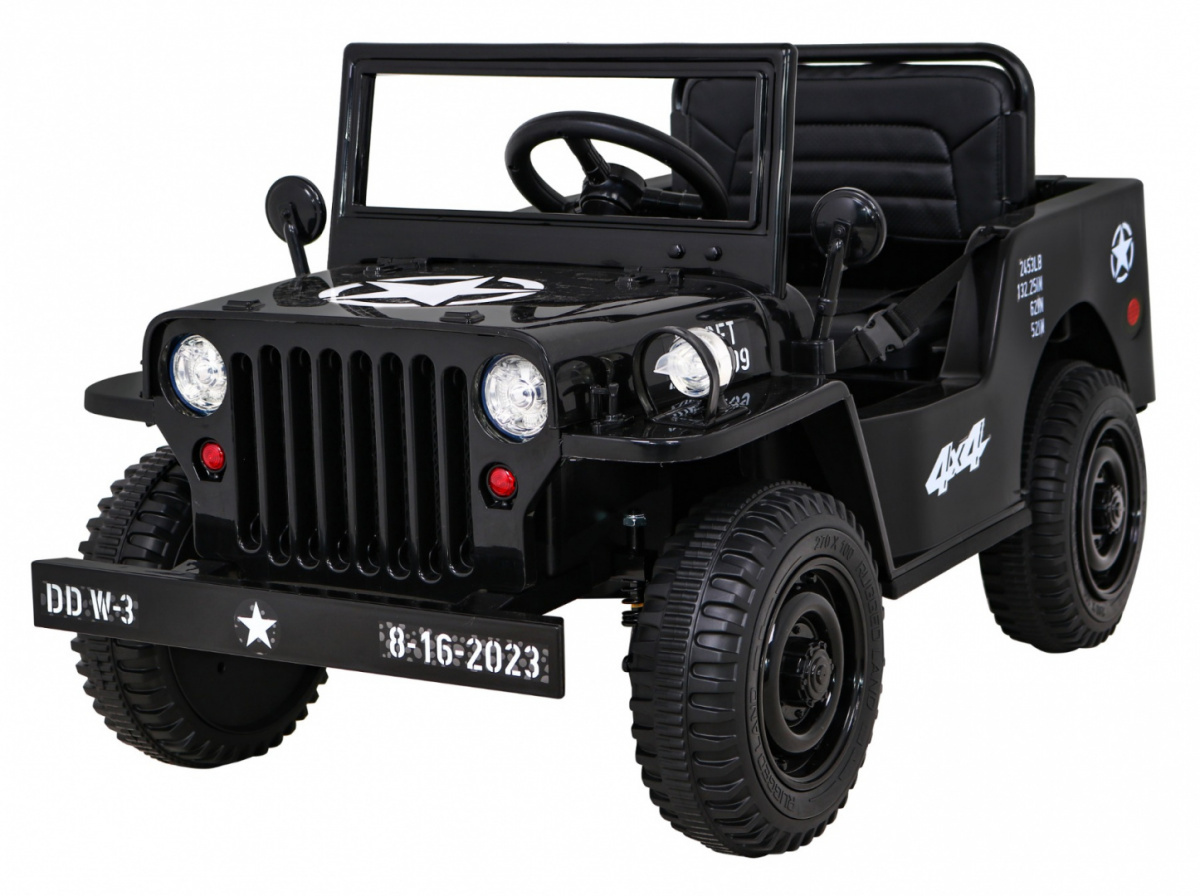 Retro vojenské auto pro děti černé + pohon 4x4 + dálkové ovládání + 2 nosiče zavazadel + pomalý start + MP3 LED
