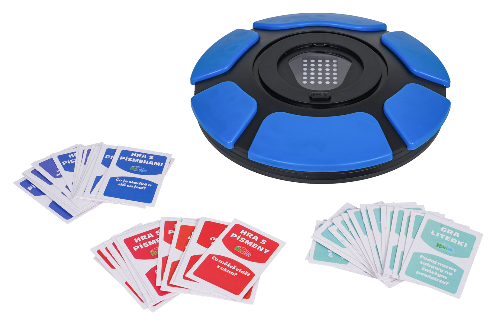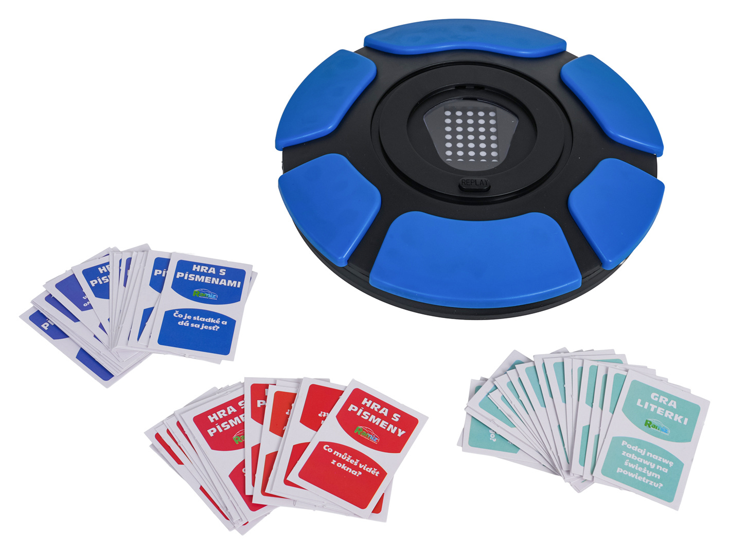 V druhém režimu (přepínač 2) hrají hráči postupně, ne současně. Každý hráč si vytáhne kartu a postupně odpovídá na otázky. Pravidla hry můžeme libovolně upravovat. Hra rozvíjí slovní zásobu a postřeh. Bude ideální na společné rodinné večery i na hru v kruhu přátel. Pro malé i velké. Disk je napájen bateriemi typu 3 x AAA 1,5V (nejsou součástí balení).