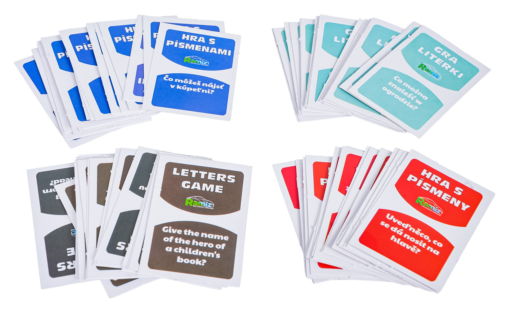 - 19 oboustranných karet s otázkami v polském, anglickém, slovenském a českém jazyce. Pozor, karty v jednom náhodném jazyce jsou ukryty ve skrýši na spodní straně disku.