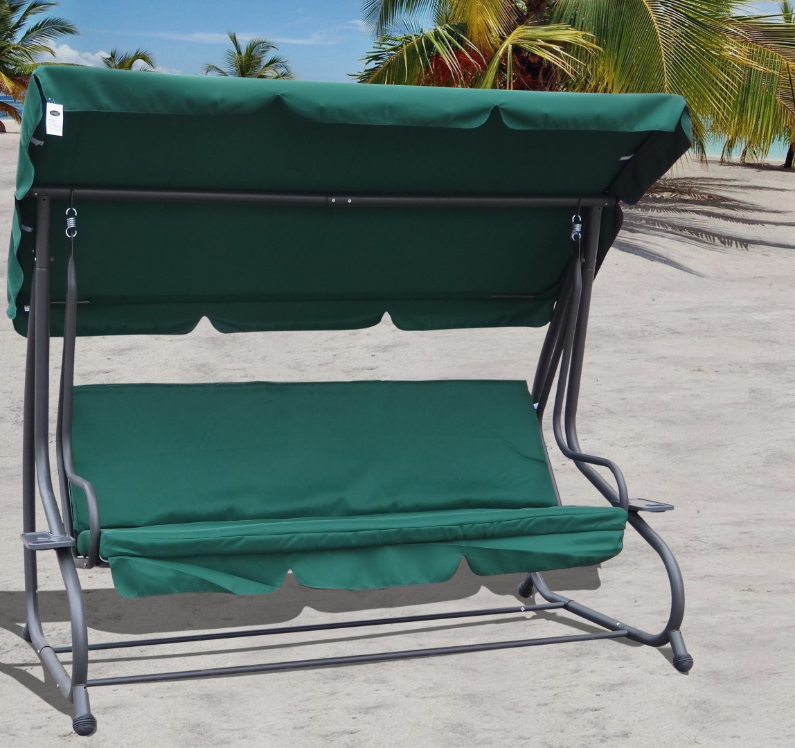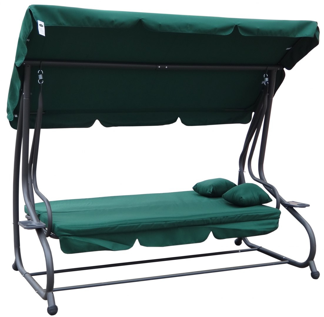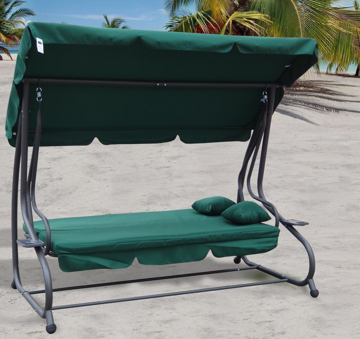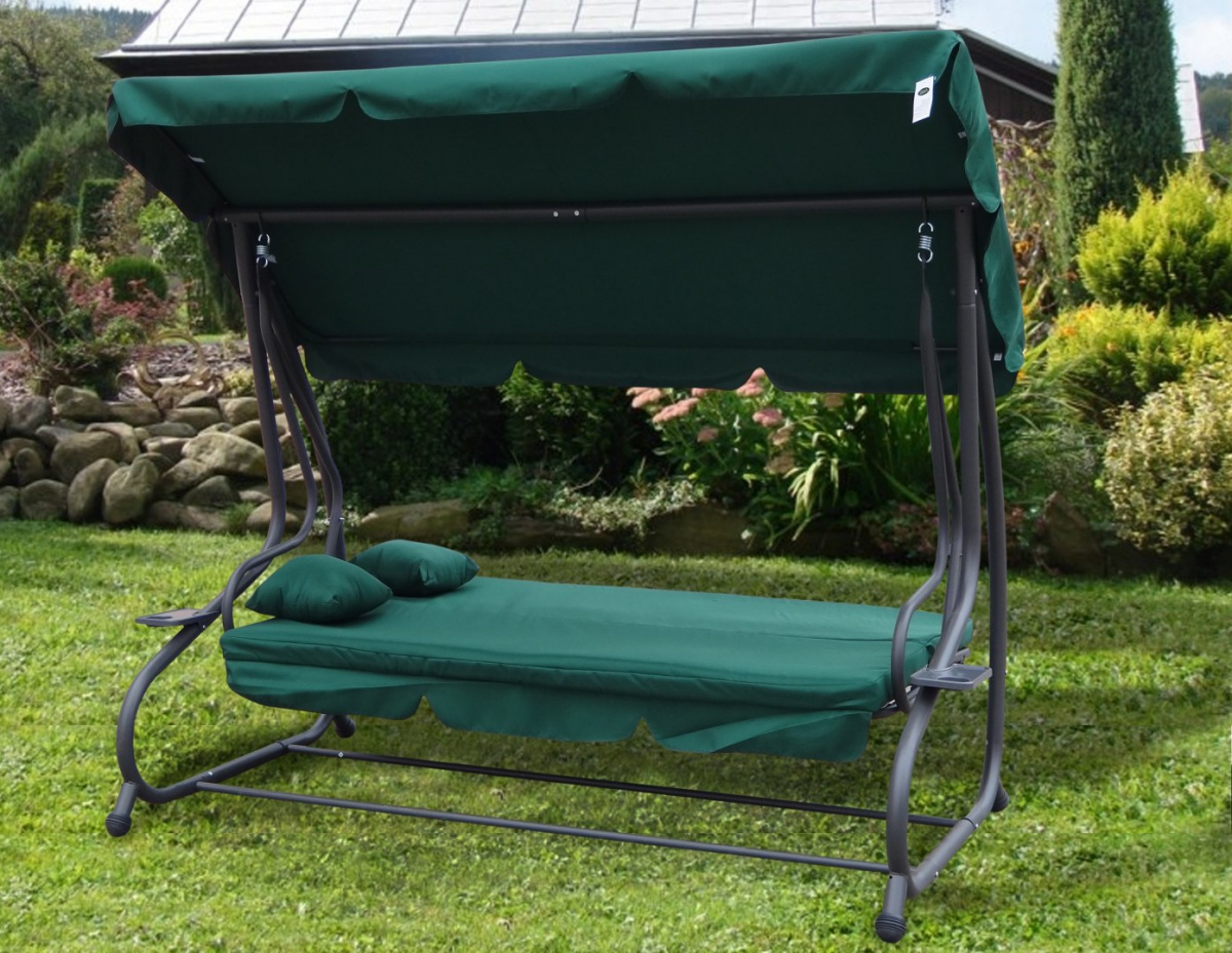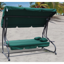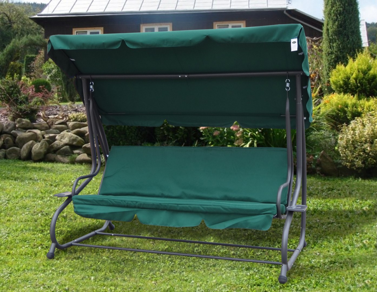 Rodinná zahradní houpačka se stříškou zelená + textil 2x1 + nastavitelné sedadlo + matrace + 2 držáky na nápoje