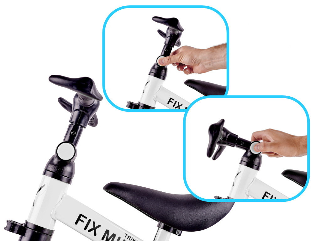 Konstrukce umožňuje plné nastavení řídítek od 41 cm do 50 cm a sedla od 31 do 38 cm. díky tomu lze výšku dokonale přizpůsobit uživateli a zajistit tak pohodlí a bezpečnost.