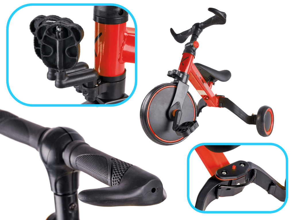První z nich je běžecká tříkolka! když pedály umístíte do speciálních držáků a kola rozložíte do stran, vznikne pohodlné a stabilní vozidlo, které se skvěle hodí pro vaše první dobrodružství na kolech!