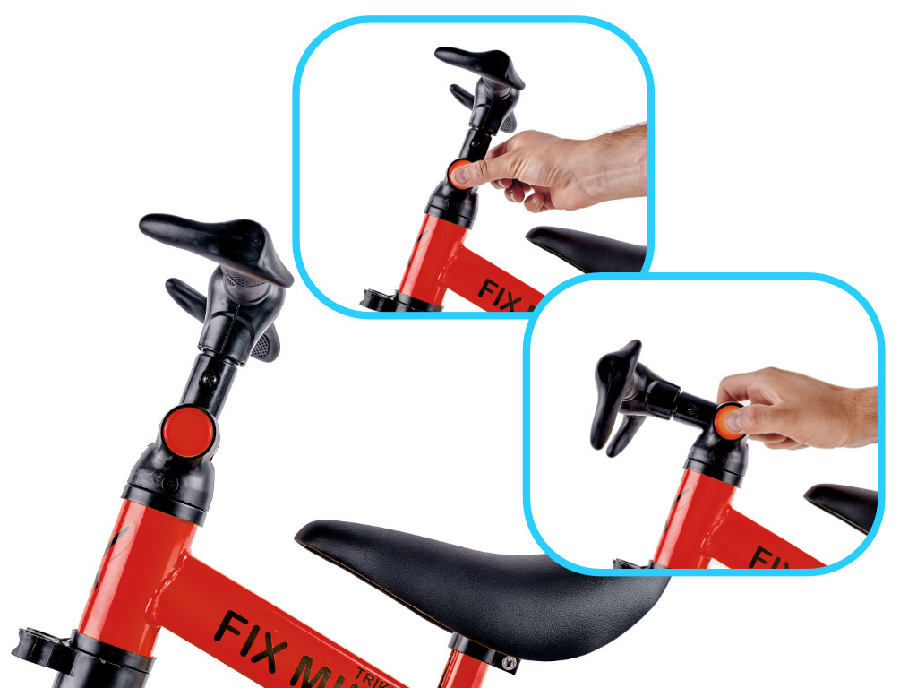 Konstrukce umožňuje plné nastavení řídítek od 41 cm do 50 cm a sedla od 31 do 38 cm. díky tomu lze výšku dokonale přizpůsobit uživateli a zajistit tak pohodlí a bezpečnost.