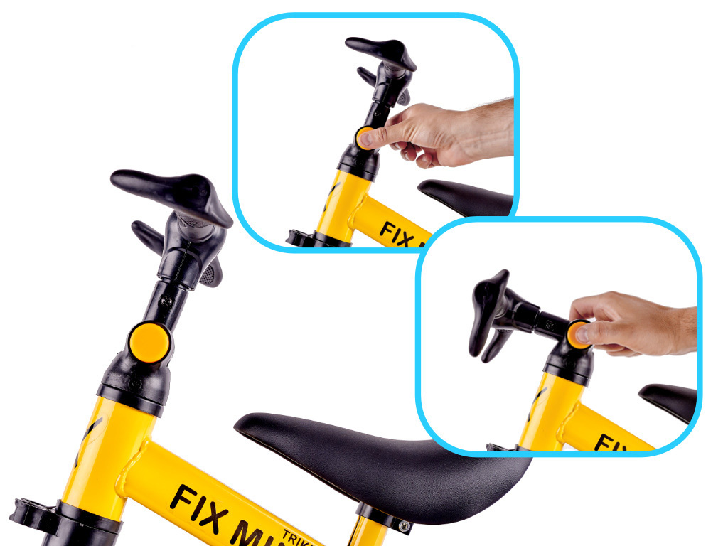 - Konstrukce umožňuje plné nastavení řídítek v rozmezí 41 až 50 cm a sedla v rozmezí 31 - 38 cm. Díky tomu lze výšku dokonale přizpůsobit uživateli a zajistit tak pohodlí a bezpečnost.
