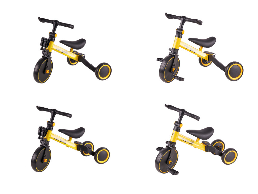 - První z nich je tříkolka! Když pedály umístíte do speciálních úchytů a kola rozložíte do stran, vznikne pohodlné a stabilní vozidlo, které se skvěle hodí pro první dobrodružství na kolech!