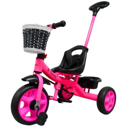Tříkolka s rukojetí (tlačítkem) pro děti Model T8 - tlačítko Značka R-Sport PĚNOVÁ KOLA EVA! RŮŽOVÁ BARVA Tříkolka pro děti. Dítě řídí kolo pomocí řídítek, kolo je poháněno pomocí pedálů. Tříkolová konstrukce zajišťuje kolu plnou stabilitu. Kolo má vzadu košík. Kolo pro věk 2,5-6 let