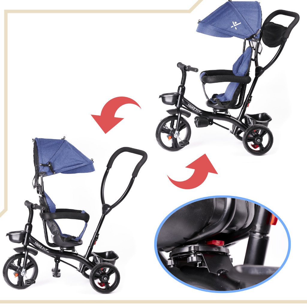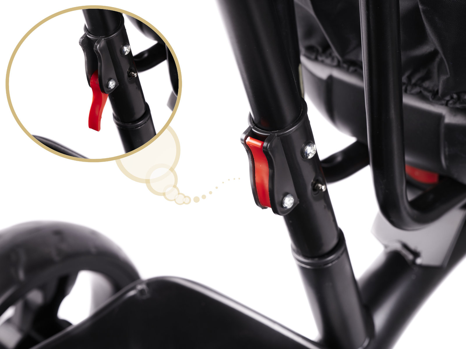 Určitě oceníte otočné sedadlo o 360 stupňů, které rodiče rádi používají na začátku používání tříkolky, aby se mohli na své dítě dívat nebo mu naopak při procházkách ukazovat svět. Výsuvná tyč umožňuje ovládání tříkolky. Jakmile vaše dítě plně zvládne jízdu na tříkolce a tyč již není potřeba, můžete jej snadno odstranit. Tříkolka je také vybavena zvonkem.