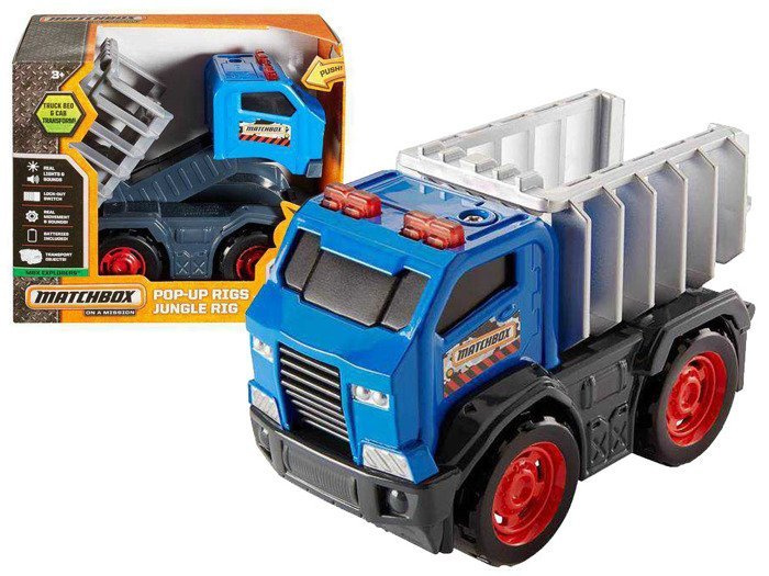 Vůz se rozkládá - kabina a přívěs se zvedají za doprovodu zvuků auta a blikajících světel.