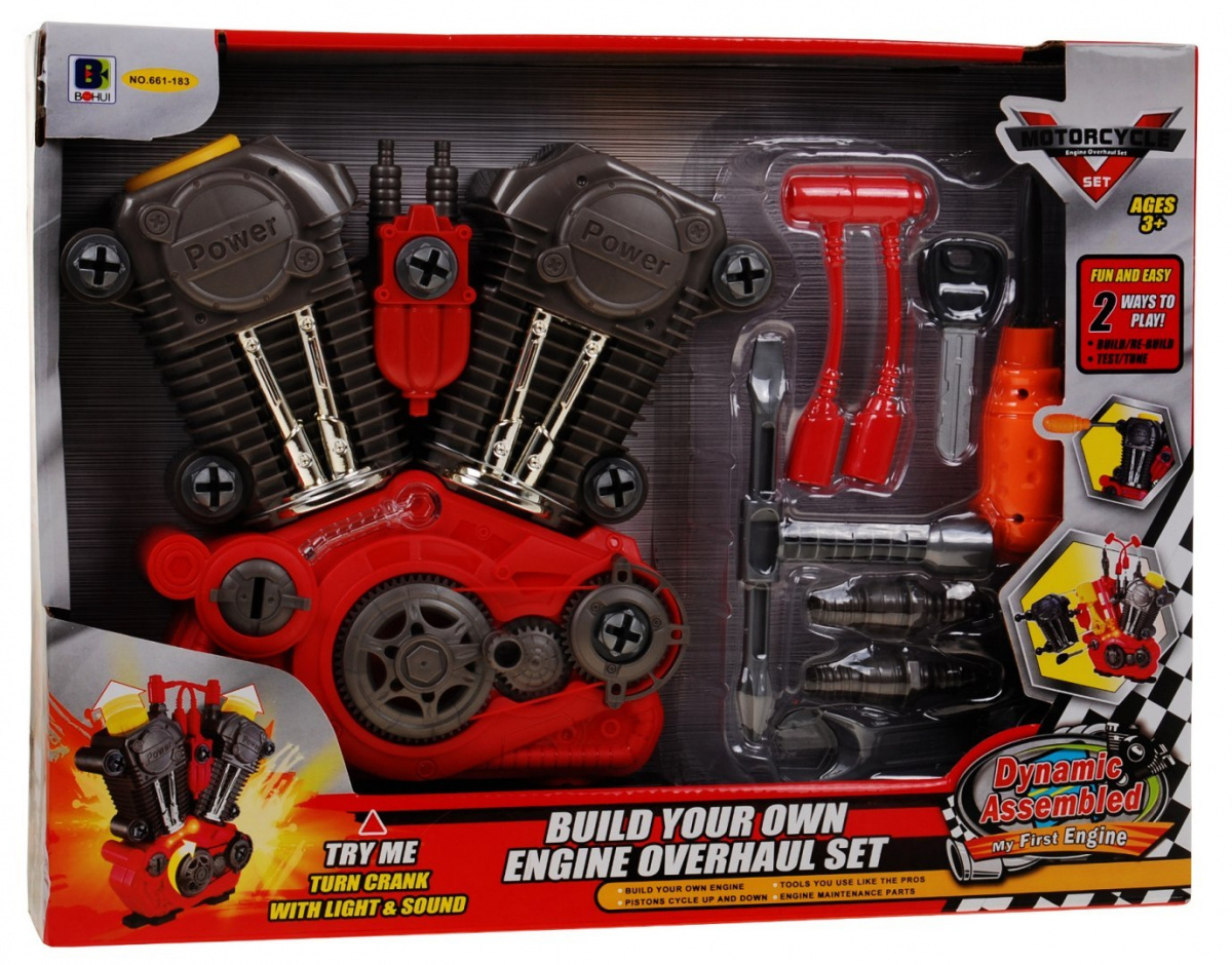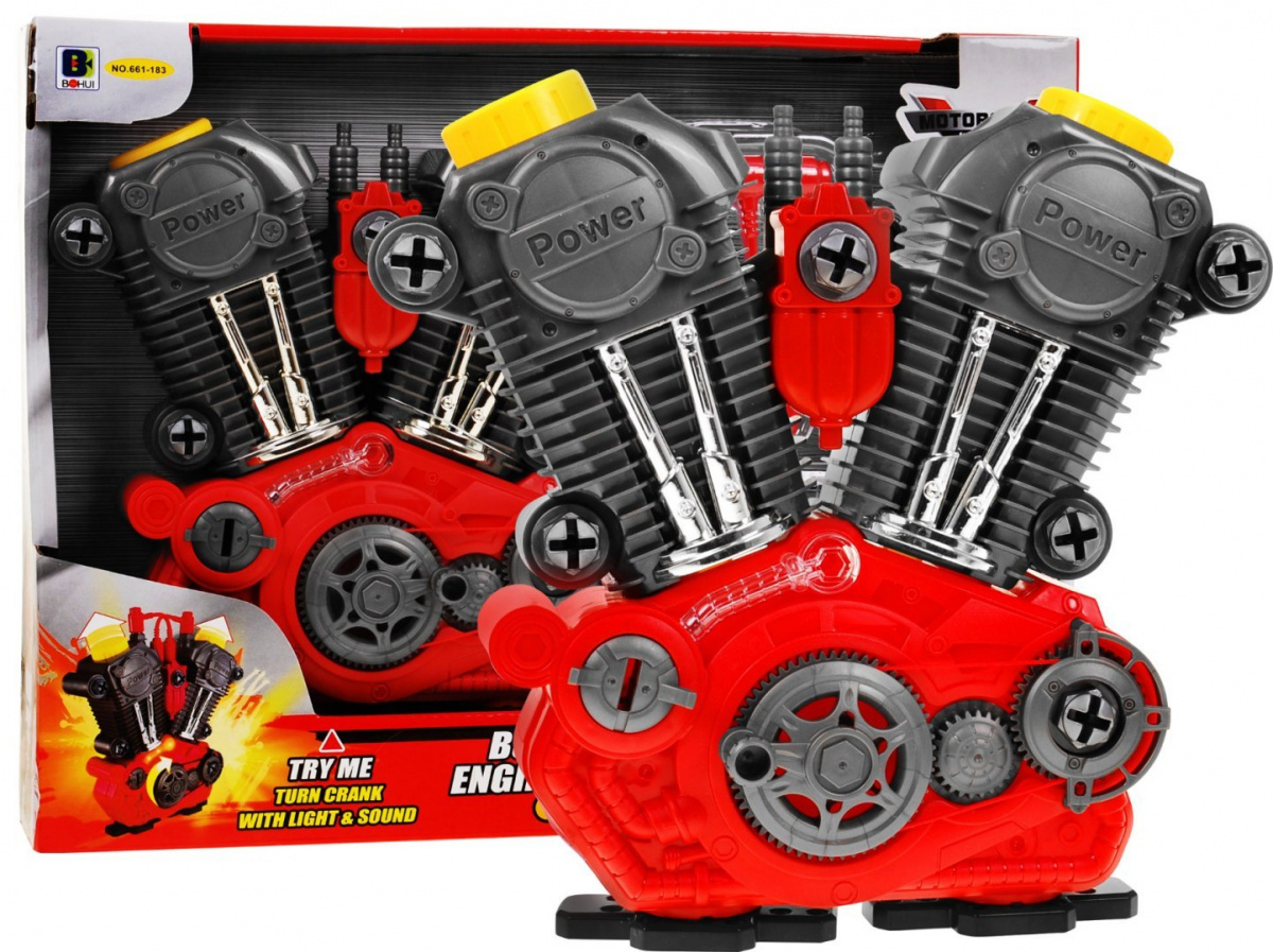 Při hře s touto neobyčejnou hračkou se vaše dítě bude cítit jako skutečný mechanik. Jednotlivé součásti motoru lze snadno rozebrat a sešroubovat od základu.