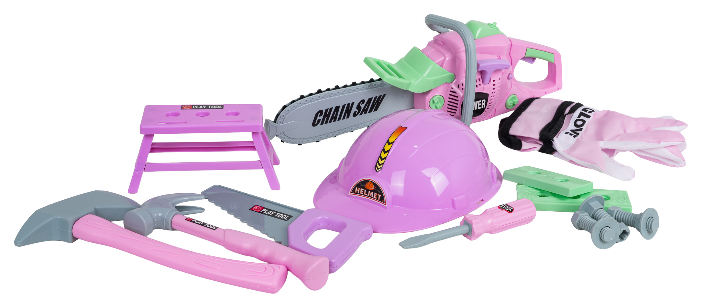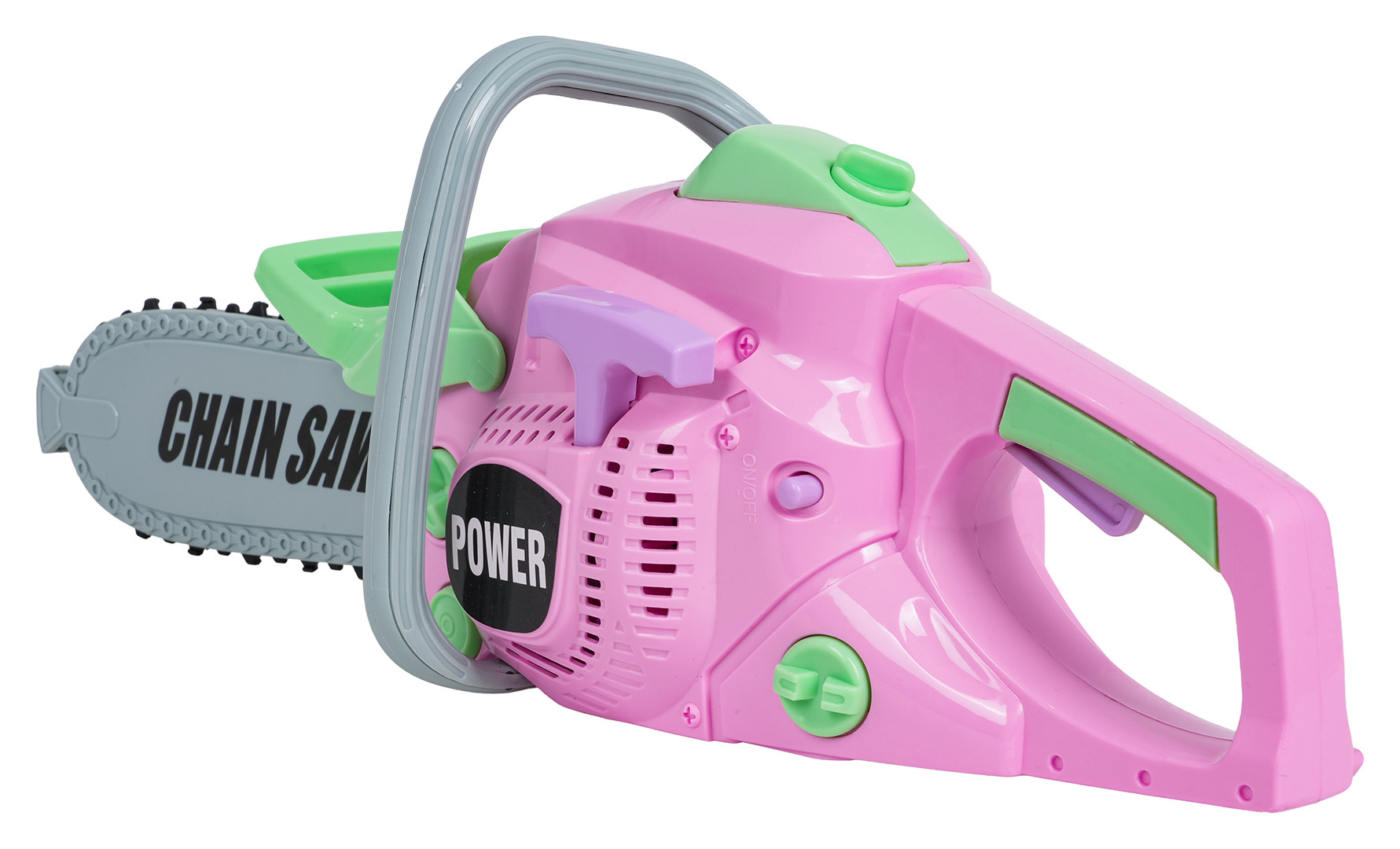 Růžová, bohatě vybavená sada nástrojů pro děti od tří let. Sada je vyrobena z nejkvalitnějšího plastu s důrazem na detaily. Najdeme v něm motorovou pilu se zvukovými efekty, helmu, nástroje, šroubky, pracovní stůl. Ideální sada pro malé kutily. Pila je napájena bateriemi 3 x AA 1,5V (nejsou součástí balení).