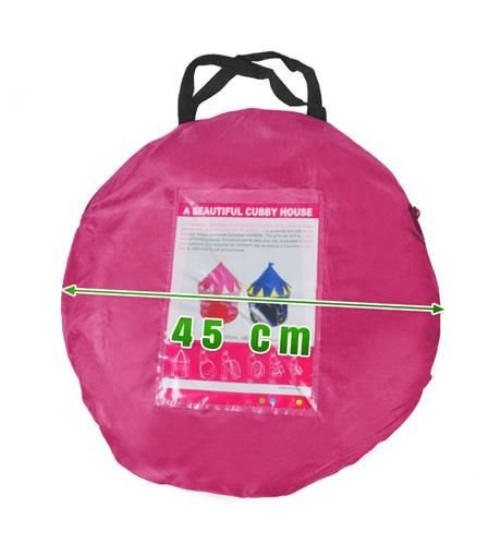 SPECIFIKACE - barva: růžová; rozměry (výška / šířka): 135/105 cm, rozměry vchodu (výška / šířka): 55/40 cm, průměr krytu: 45 cm; hmotnost: 905g.