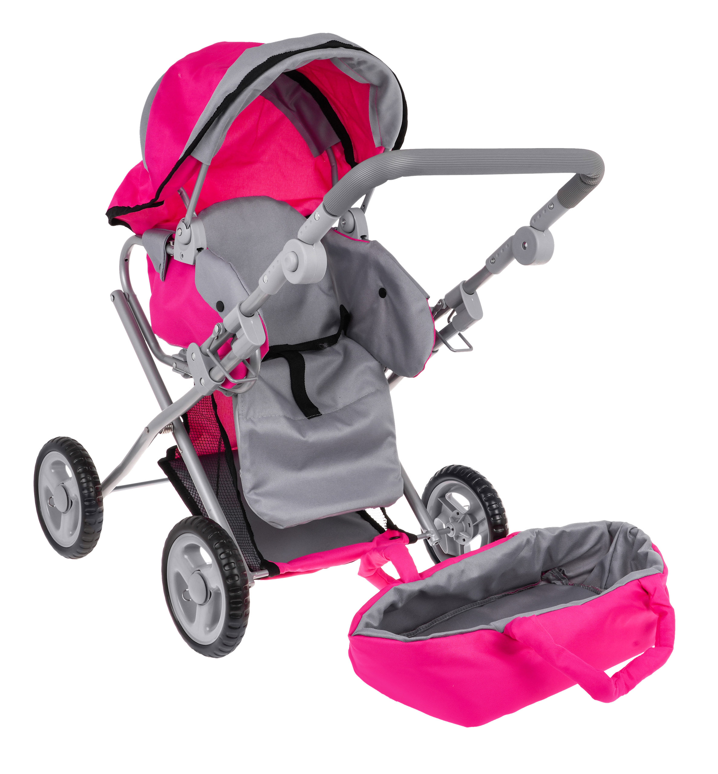 Roztomilý, pevně vyrobený kočárek 2 v 1 pro děti od 3 let. Kočárek byl vyroben s důrazem na detail a z odolných materiálů a bude vašemu děťátku sloužit mnoho let. Hračka má funkci 2 v 1 a lze ji použít jako přenosnou postýlku nebo kočárek. Model má popruhy, nastavitelné sedadlo, skládací stříšku a nastavitelnou rukojeť vozíku. Je lehké a snadno ovladatelné již pro tříleté děti. Pro přepravu jej lze složit, takže nezabere mnoho místa.