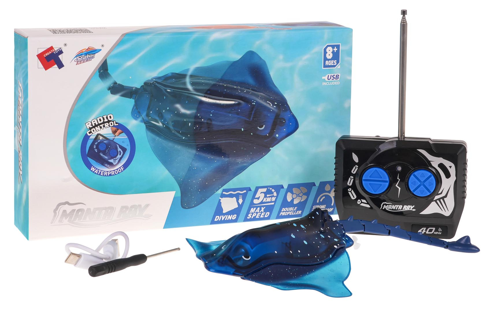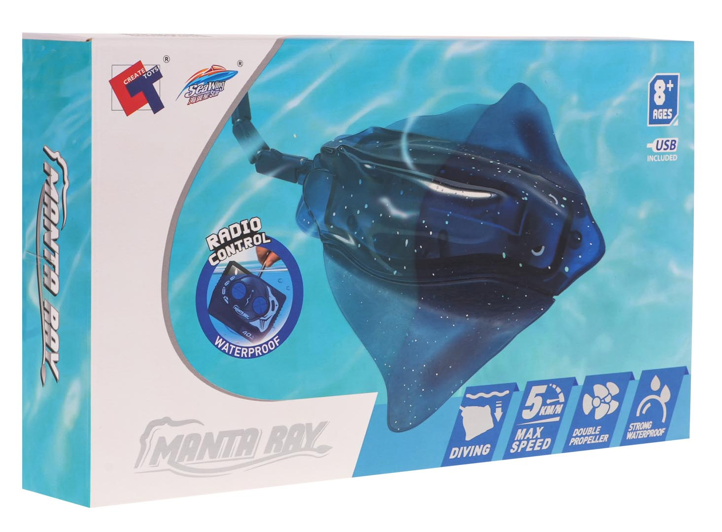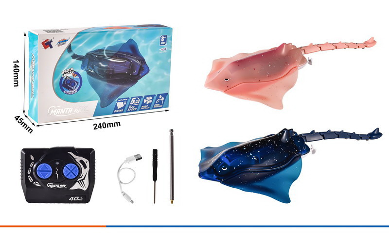 Dálkově ovládaný rejnok je unikátní vodní hračka pro děti od 8 let . Věrně replikuje vzhled a pohyby skutečného rejnoka. Díky vodotěsnému provedení rejnok volně plave ve vodě a provádí realistické manévry – pohybuje se vpřed, vzad a otáčí se ze strany na stranu.