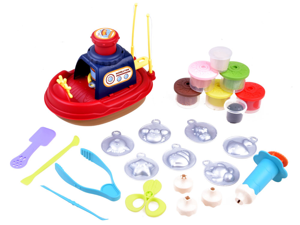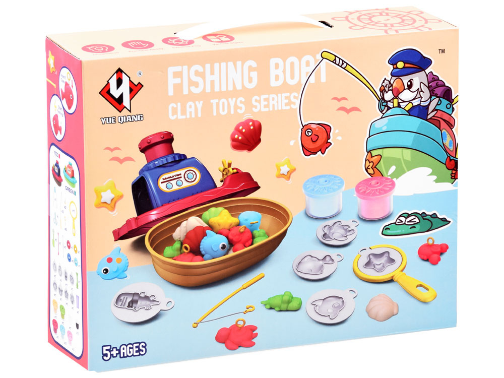Rybářské plavidlo s plastovou hmotou na hraní, vytváření mořských živočichů, jako jsou ryby, želvy, krabi, krokodýl, mušle, hvězdice. Plastový člun s komínem pro vytlačování forem, který se snadno používá. Sada se dodává s příslušenstvím, které usnadňuje zábavu při vytváření podmořského světa. Hra s lodí a příslušenstvím je velmi kreativní a zajímavá.