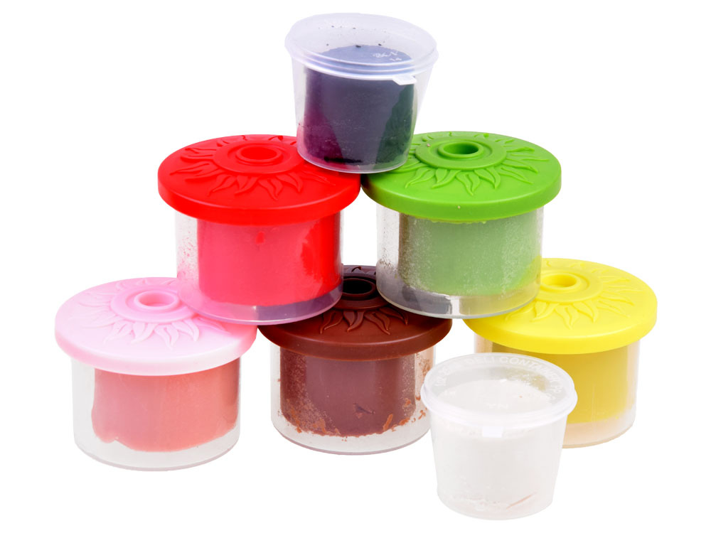 - 5 nádob s plastovou hmotou (žlutá, hnědá, růžová, červená, zelená)