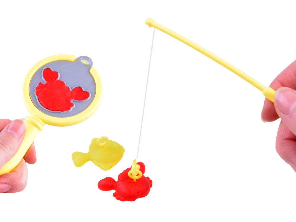 Úkolem dítěte je z plastové hmoty vytvarovat ryby a mořské živočichy a poté je pomocí rybářského prutu chytit. Vaše dítě pravděpodobně najde spoustu nápadů na hraní.