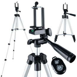 Vlastnosti produktu: - univerzální držák telefonů 52-85mm - univerzální montážní závit pro kamery a fotoaparáty - vyrobeno z hliníku a odolného plastu - velmi lehký - vestavěná vodováha v hlavici - bluetooth ovladač pro dálkové pořizování fotografií z telefonu - napájení ovladače – baterie CR 2032 v balení - otočná 3D hlava - nastavení výšky se zámkem ~34cm - ~103cm - nastavení sklonu stativu - malé rozměry po složení: 33cm x 7,5cm - obal v balení
