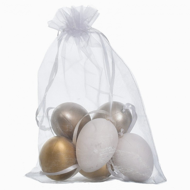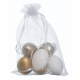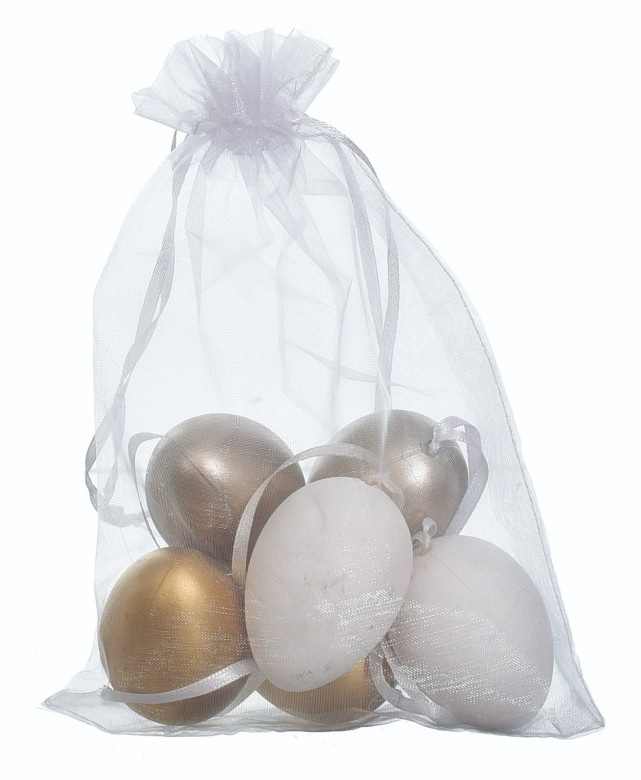 Vajíčka byla pečlivě vyrobena a jejich klasický tvar a elegantní forma zajistí, že se budou krásně vyjímat jako dekorace na velikonočním stromku, větvičkách, oknech nebo jako součást stolní výzdoby. Každé vajíčko bylo zabaleno do jemného sáčku, což činí sadu připravenou k darování jako dárek nebo k ozdobení prostoru. To je skvělý způsob, jak přinést jarní atmosféru a velikonoční teplo do každého interiéru.