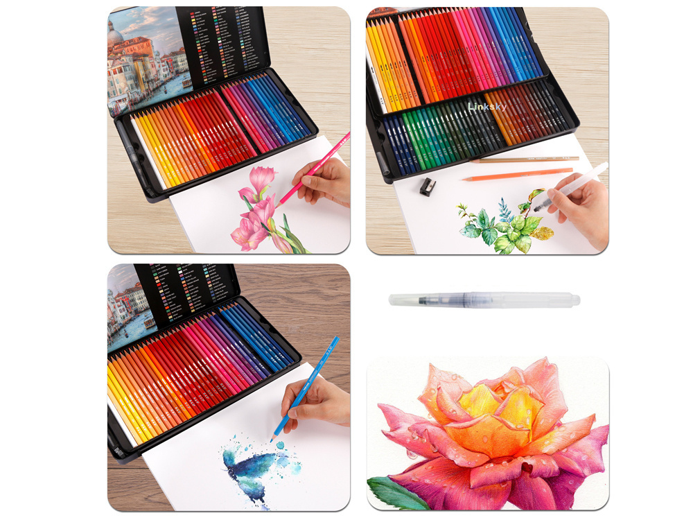 Tato sada akvarelových tužek v 72 barvách je skvělou sadou pro všechny malé i velké umělce. Pastelky vynikající kvality s jemným hrotem, jemnou strukturou a dokonalou věrností barev v elegantní krabičce jsou ideální sadou například pro vytváření vlastních uměleckých děl. vavříny pro rodiče, prarodiče, krásné krajiny, obrázky, omalovánky. Akvarelové pastelky lze použít k vybarvování, kreslení jako běžné pastelky, ale kouzlo začíná, když použijete štětec s vodou a vytvoříte akvarelový efekt. To umožňuje dosáhnout pozoruhodných efektů, od silných, expresivních tahů až po jemné, decentní vjemy. Díky měkkému složení bude kreslení hračka!