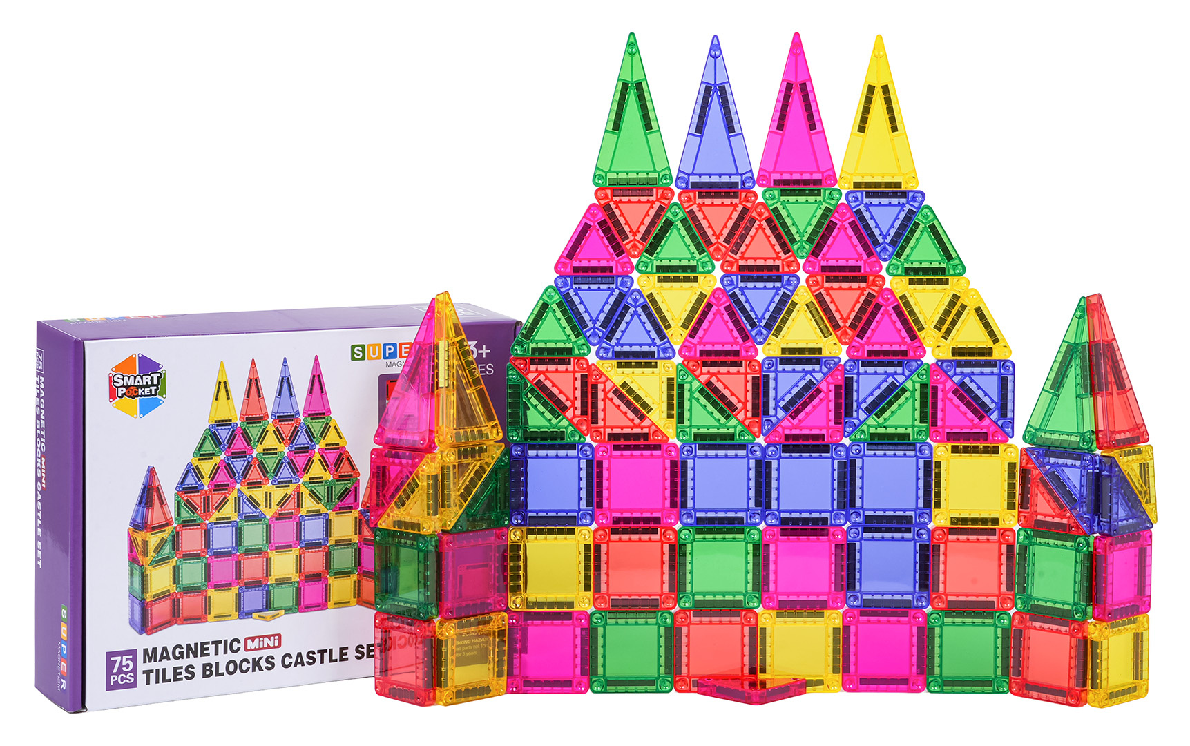 | Bohatě vybavená sada magnetických kostek pro děti od tří let. Sada se skládá ze 75 různobarevných kostek. Magnetické kostky jsou vyrobeny z odolného plastu. Spojují se pomocí neodymových magnetů. Můžeme je spojovat v různých konfiguracích a pod různými úhly, vytvářejíc 3D konstrukce. Skládání kostek pozitivně ovlivňuje rozvoj kreativity, učí trpělivosti a soustředění.