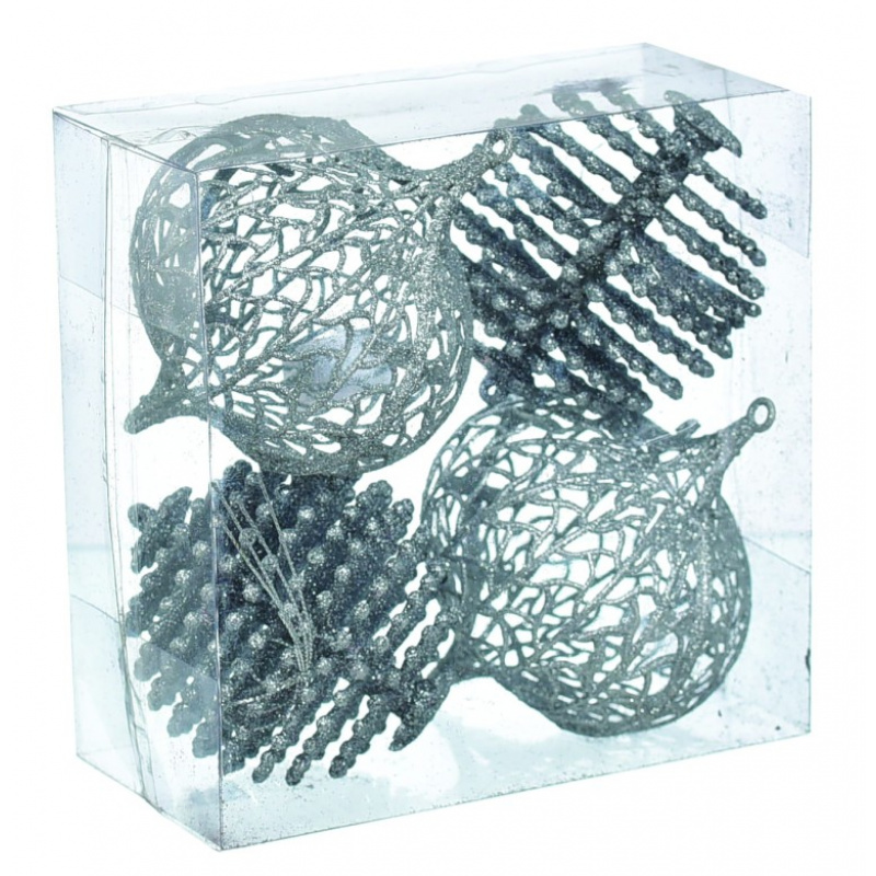 Sada čtyř stříbrných vánočních ozdob na stromeček
