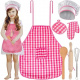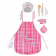 Děti jsou přirozeně zvědavé na svět a rády napodobují ostatní. Učí se pozorováním a hrou. Sada pro malého kuchaře je fantastický způsob, jak trávit čas atraktivním způsobem pro děti, které si rády hrají na domečky a připravují jídla. Umožní vám hrát role již od útlého věku a bude plnit výchovnou funkci. Tento produkt je skvělým nápadem, jak zahnat nudu, zvláště když je venku špatné počasí. Sada se skládá ze zástěry, kuchařského klobouku a doplňkových doplňků na vaření, jako jsou: ochranná rukavice, prostírání pod horký pokrm, dřevěný váleček a lžíce a kovová metla. Outfit je vyroben z měkké tkaniny, která výrazně zvyšuje komfort používání. Pěkný střih, estetické prošívání, okouzlující kostkovaný vzor a sladká růžová a bílá barva činí výrobek vizuálně atraktivním. Materiál je bezpečný a snadno se čistí. Díky zavazovacím šňůrkám je kostým univerzální a pohodlný. Hodí se pro děti různého věku a hmotnosti. Bude se hodit jak pro mladší, tak pro větší děti.
