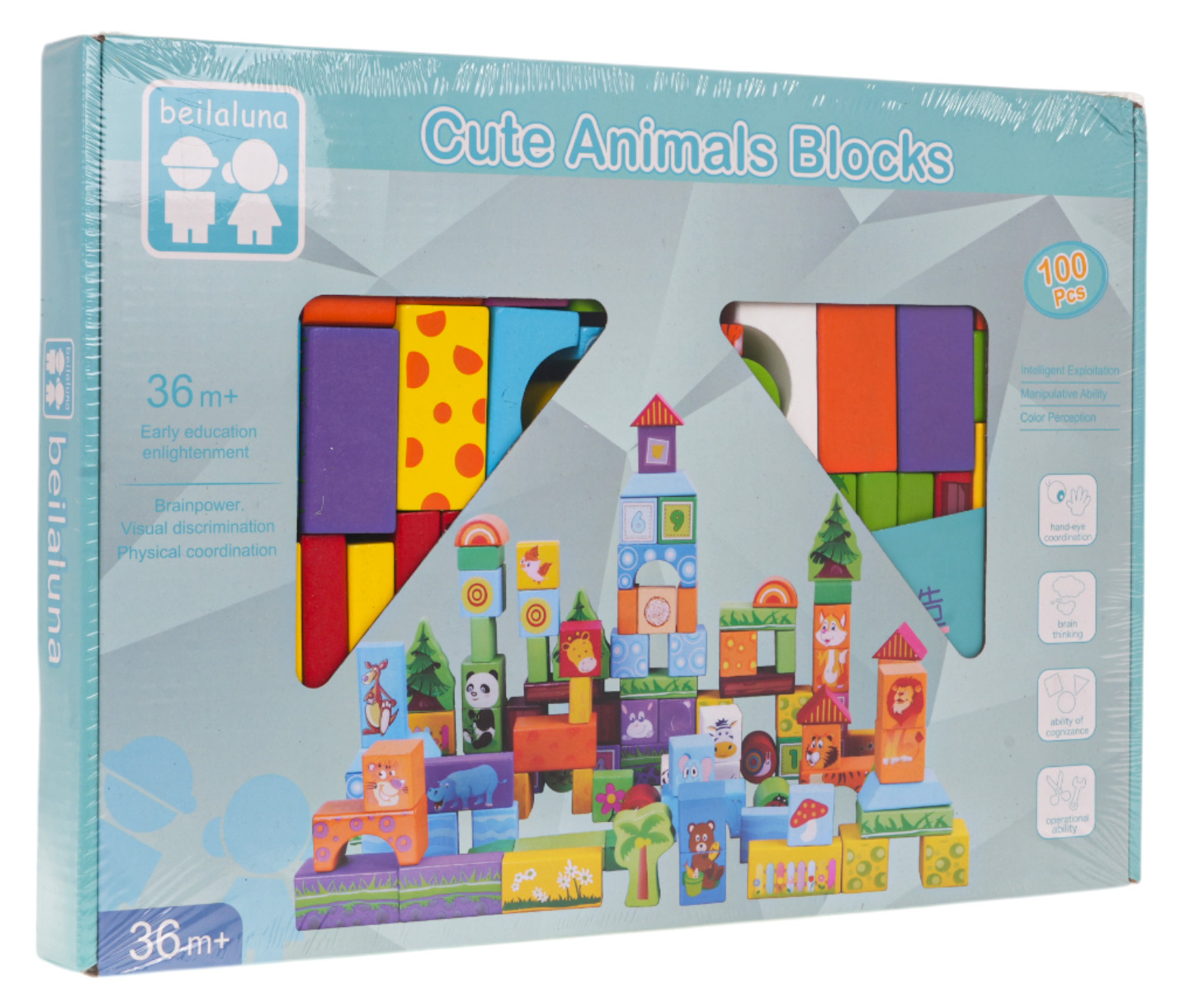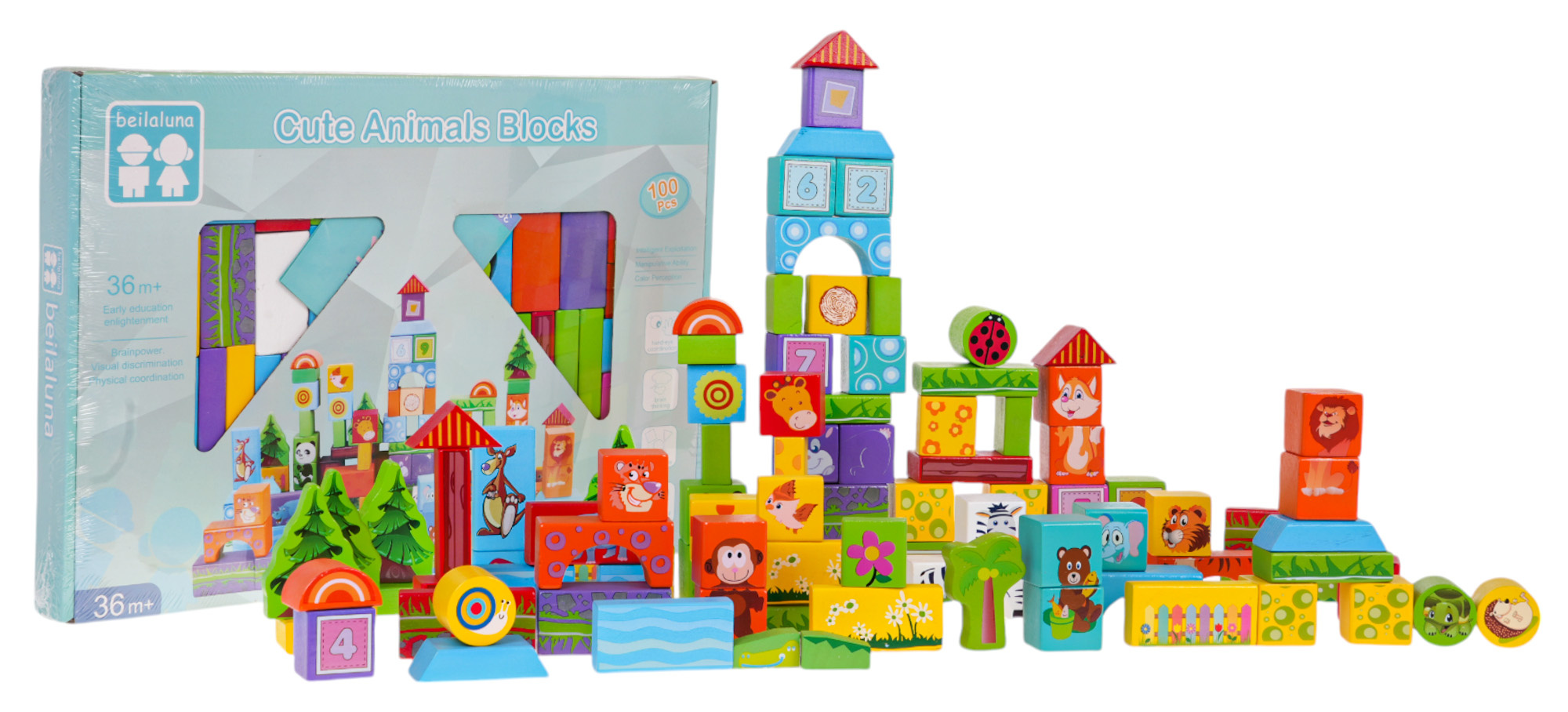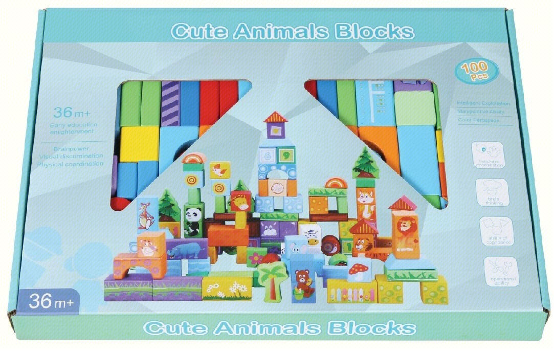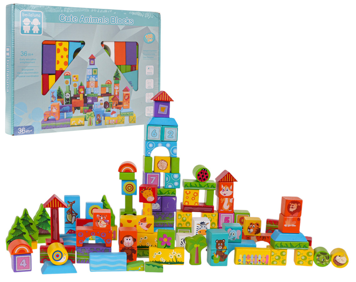 Dřevěná sada odolných kostek je určena pro děti od 3 let. Kostky byly vyrobeny z vysoce kvalitního dřeva, natřeny bezpečnou barvou, nemají ostré hrany, jsou hladké. Budou sloužit dítěti po mnoho let. Kostky mají různé tvary a barvy, což povzbuzuje dítě ke stavbě domů, věží, vozidel atd. K sadě je přiložen obrázkový návod s příklady modelů k sestavení. Většina kostek je ozdobena obrázky zvířátek, písmenky nebo tvary. Dřevěné kostky jsou hračka známá a oblíbená po generace. Stavět kostky mají rádi jak chlapci, tak i dívky. Hrou dítě trénuje svou kreativitu, rozvíjí prostorovou představivost, zručnost, trpělivost, cvičí koordinaci ruka-oko.