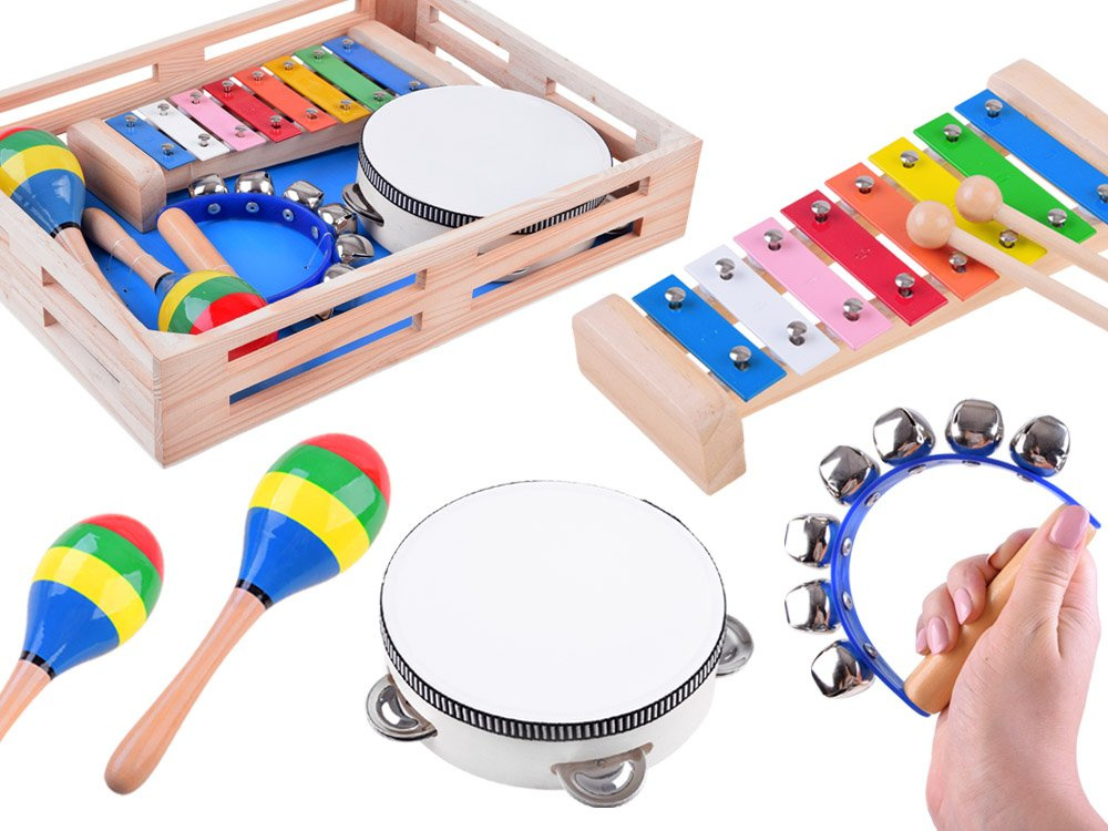 Barevná dřevěná sada nástrojů pro hraní, přehrávání a učení hudebních zvuků je ideální pro každého začínajícího hudebníka. Sada v atraktivních barvách jistě upoutá pozornost každého dítěte. Hudební hračky jsou skvělé pro rozvoj dětského sluchu a smyslu pro rytmus.