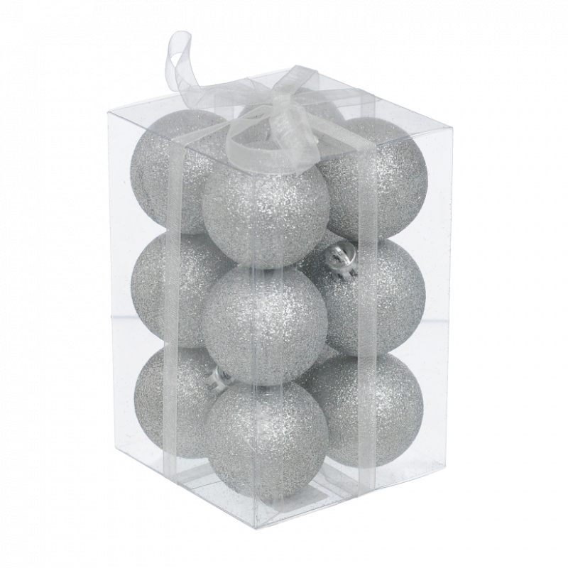 Sada dvanácti stříbrných vánočních ozdob na stromeček
