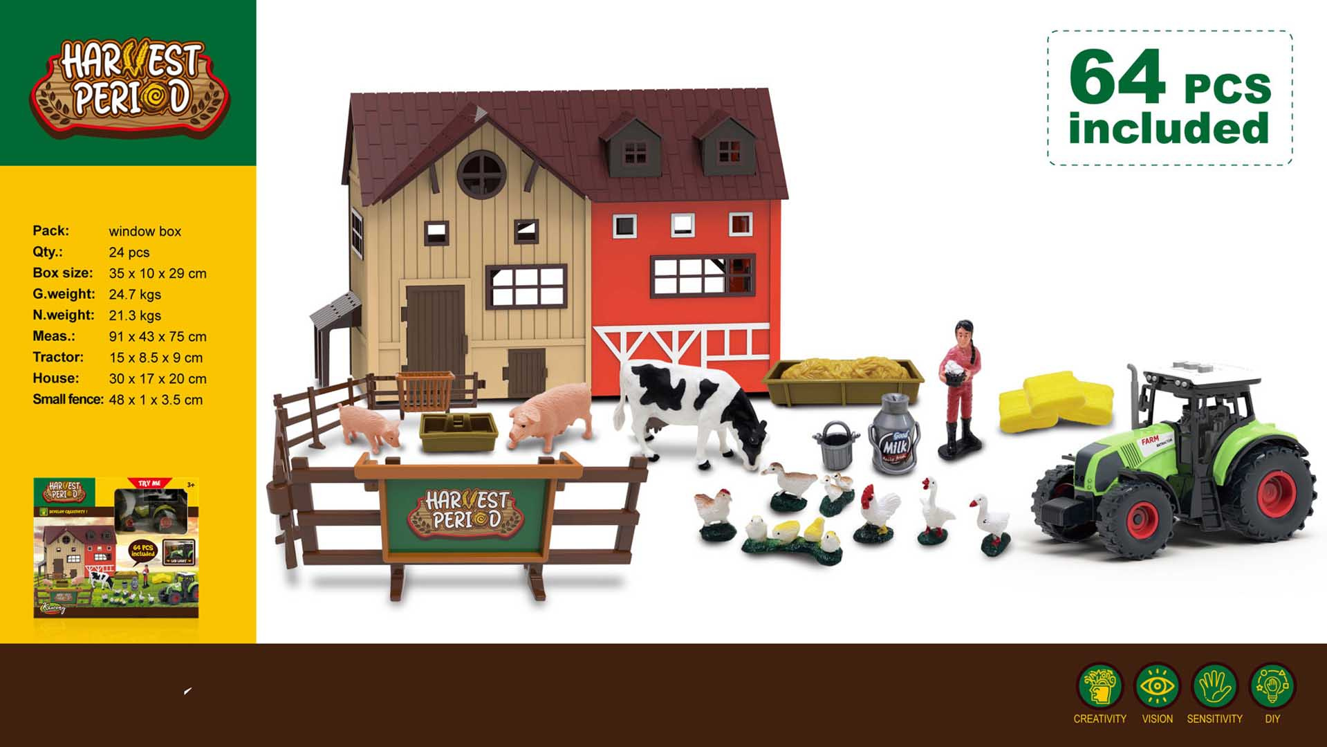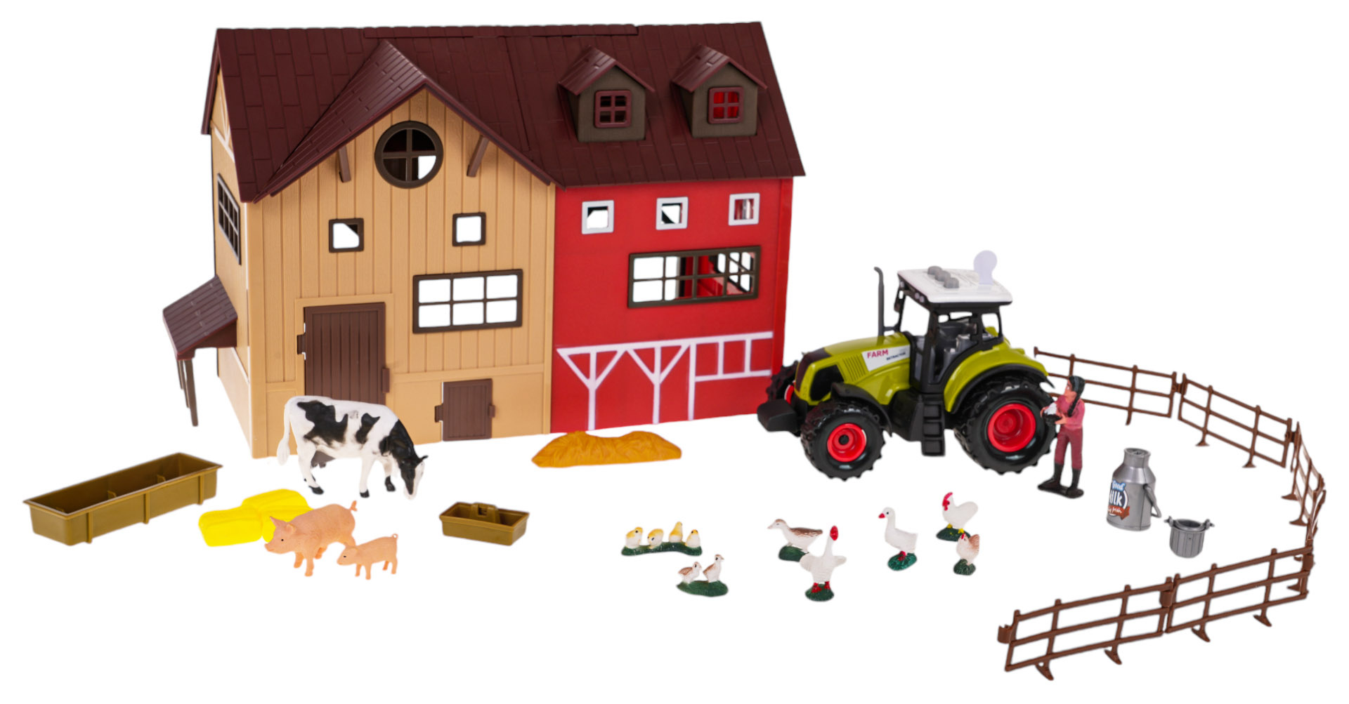 Bohatě vybavená sada farma s interaktivním traktorem pro děti od 3 let. Sada byla vyrobena z nejkvalitnějšího plastu v živých barvách. V sadě se nachází stodola, ohrada, zvířátka, figurka farmářky a interaktivní traktor se zvukovými a světelnými efekty. Traktor vydává zvuky jízdy, couvání, práce motoru (panel s tlačítky na střeše). Traktůrek je napájen bateriemi typu 3 x AG13 1,5 V (v balení).