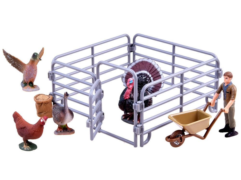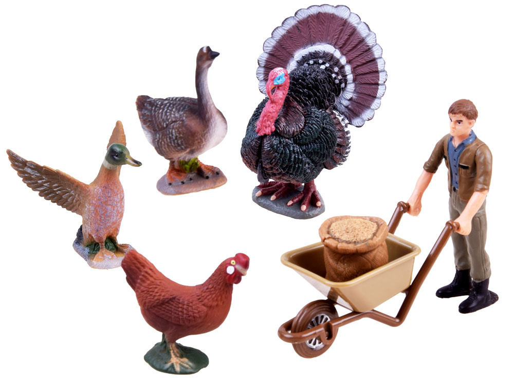 Sada obsahuje krocana, kohouta, husu a kachnu. Stejně jako na skutečné farmě na vše dohlíží postava farmáře.