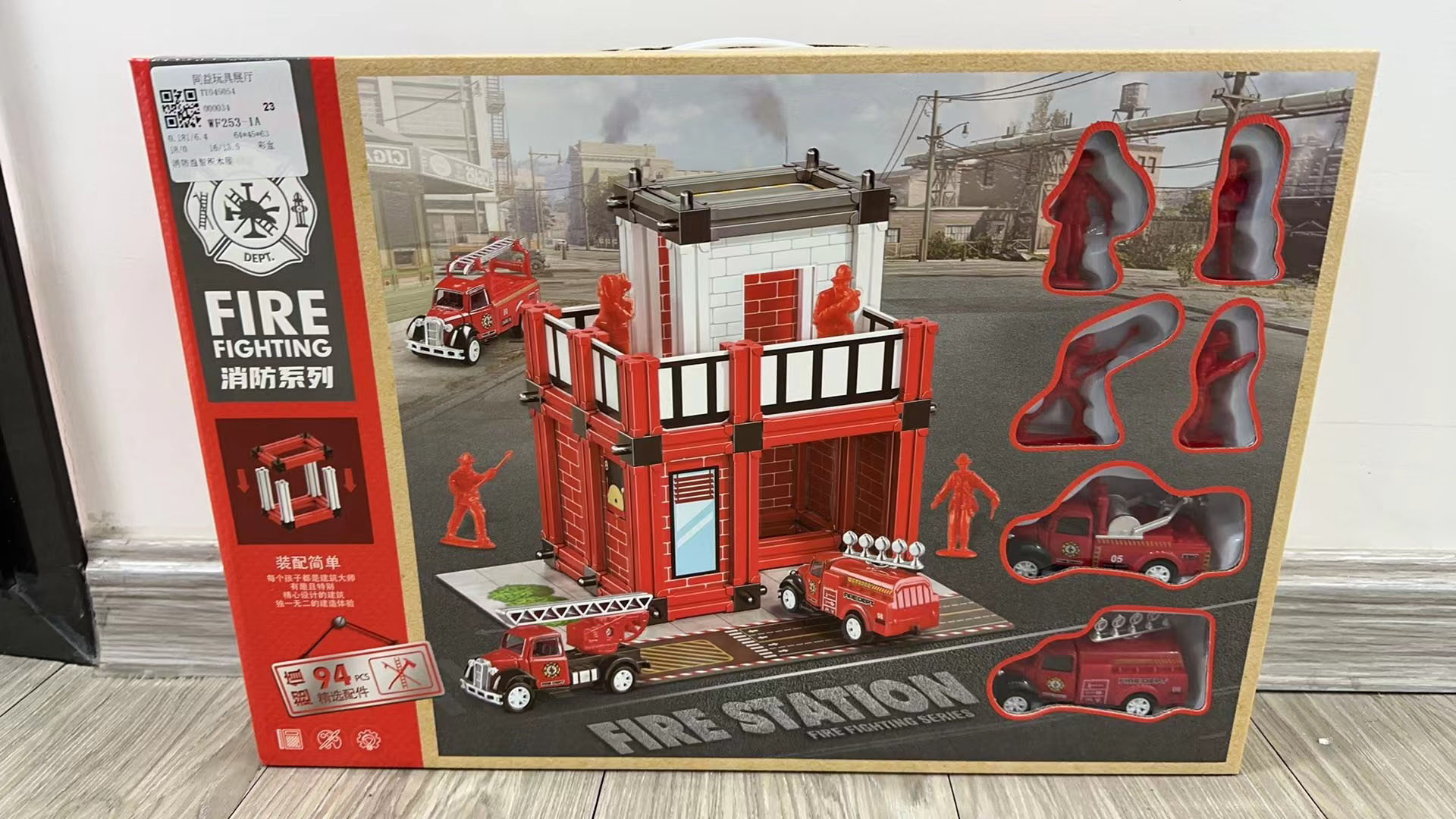 | Rozměry | - připravená sada hasičského parkoviště cca. 18,5 cm x 15,5 cm x 22 cm, - podložka s obrázkem cesty ok. 24,1 cm x 22,4 cm x 21,6 cm, - figurky hasičů přibližně. 5 cm x 2,5 cm, - hasičská autíčka ok. 9 cm x 4,5 cm x 3 cm, - opakování cca 43 cm x 31 cm x 6 cm. |
