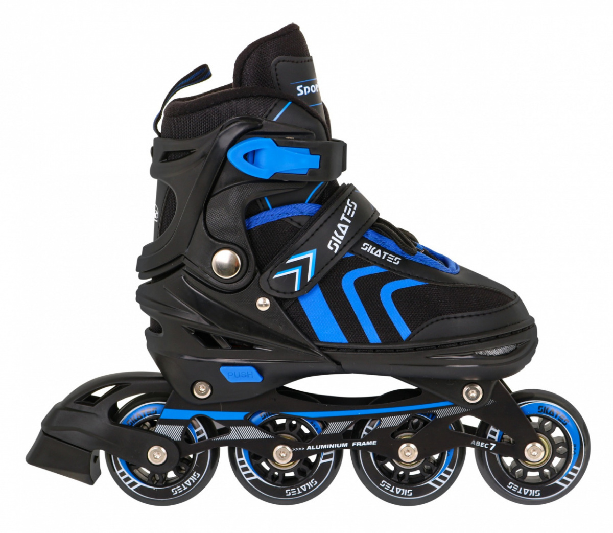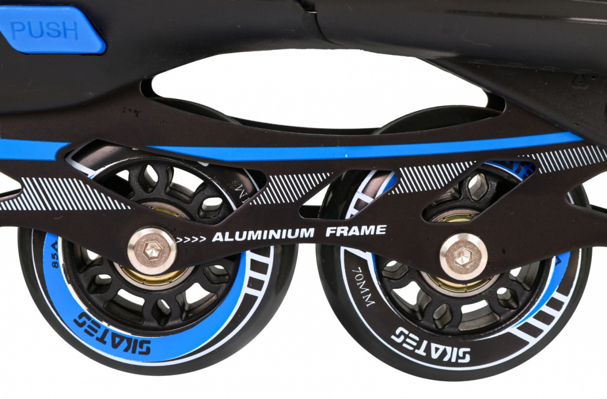 | Stopa (skluz) | - pU kolečka, 70x24 mm - tvrdost 85A - ložiska ABEC-7 - kolejnice (skluznice) z hliníku - brusle z nerezové oceli |