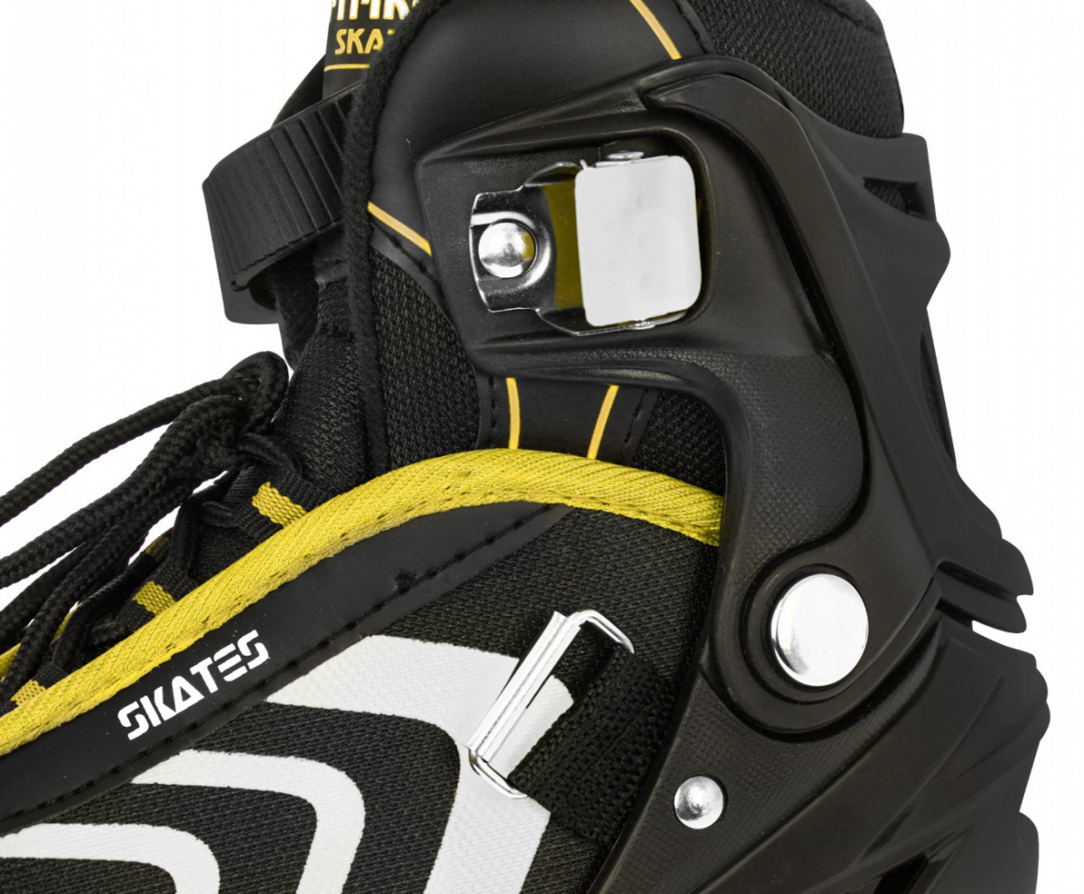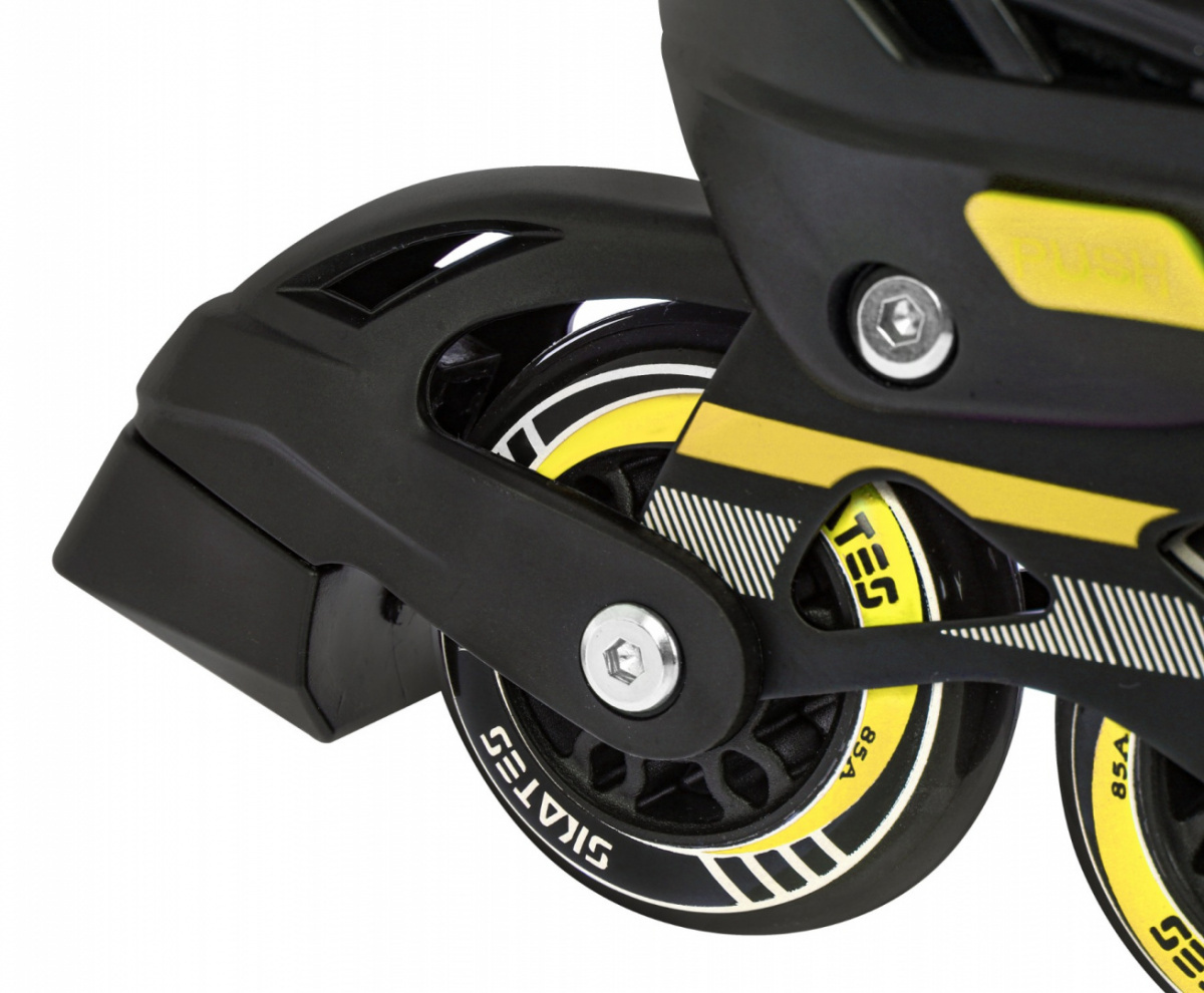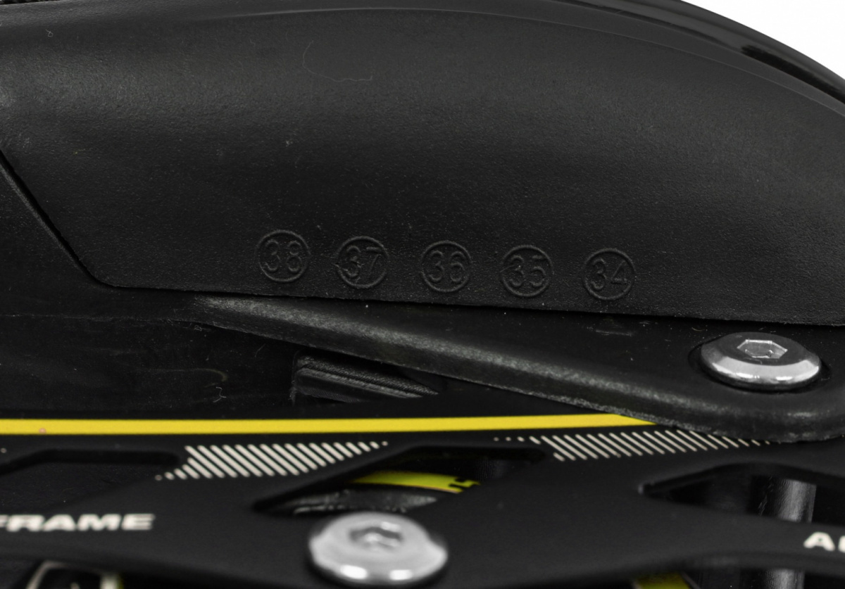 | Boty | - pětistupňový systém nastavení velikosti pomocí tlačítka (34-38) - vnitřní délka boty od 20,5 cm do 23,5 cm, - polotvrdá konstrukce pro flexibilitu boty a bezpečnost kotníku - třísekvenční zapínání: - šněrování - pásek na suchý zip - přezka (nastavitelná + pojistka proti otevření) - brzda na pravém kolečku - ventilační systém - polopropustná membrána - tvarovaná stélka - stélka s měkkou pěnou EVA, potažená vnější vrstvou ze sametové tkaniny |