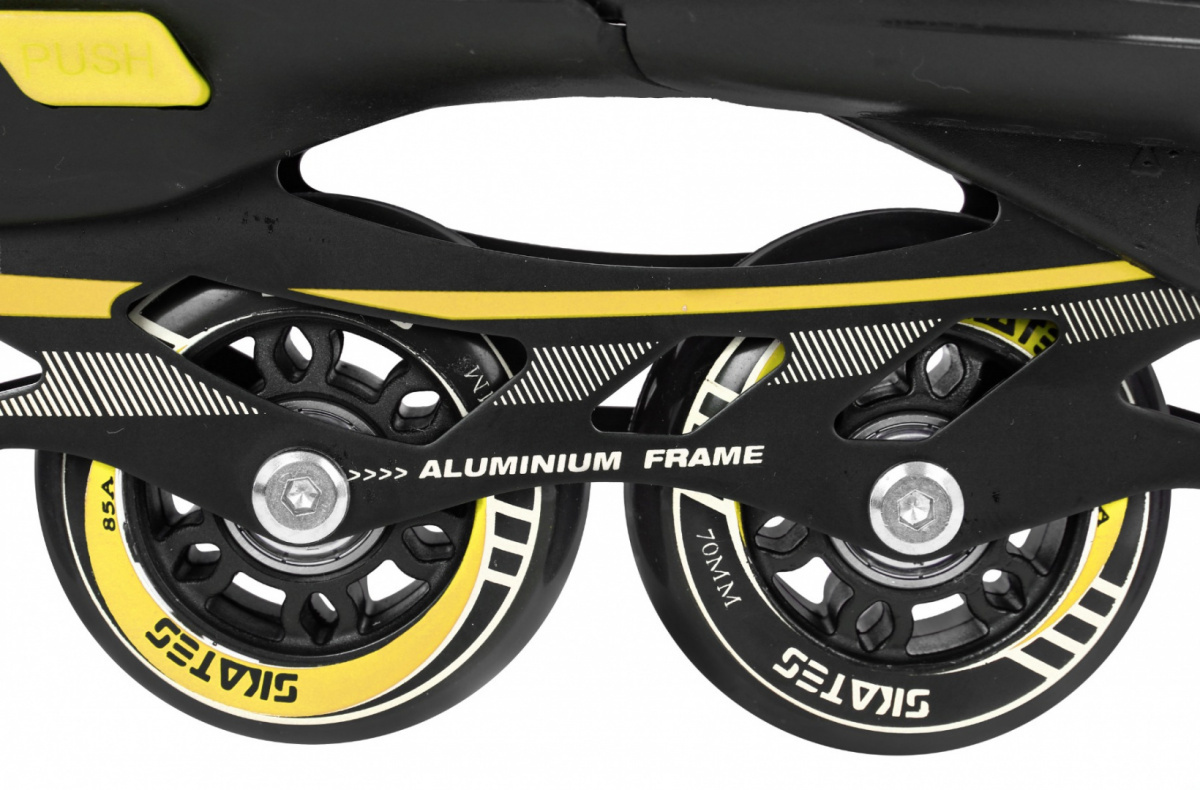 | Stopa (skluz) | - pU kolečka, 70x24 mm - tvrdost 85A - ložiska ABEC-7 - kolejnice (skluznice) z hliníku - brusle z nerezové oceli |