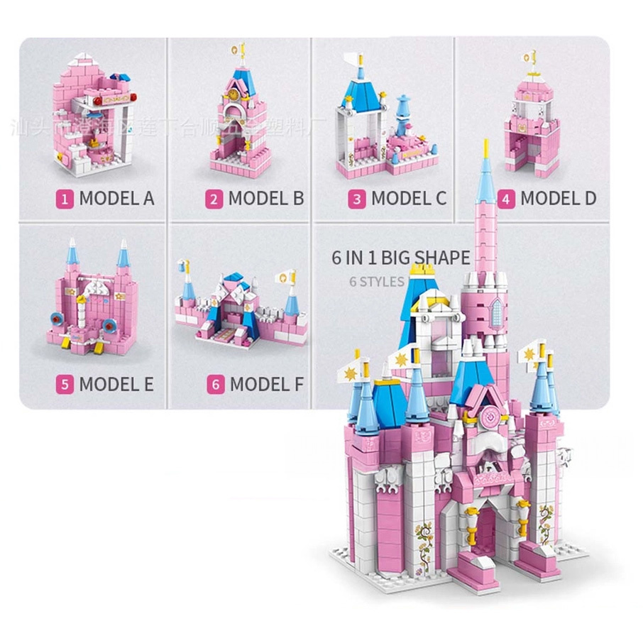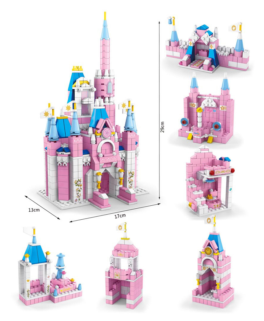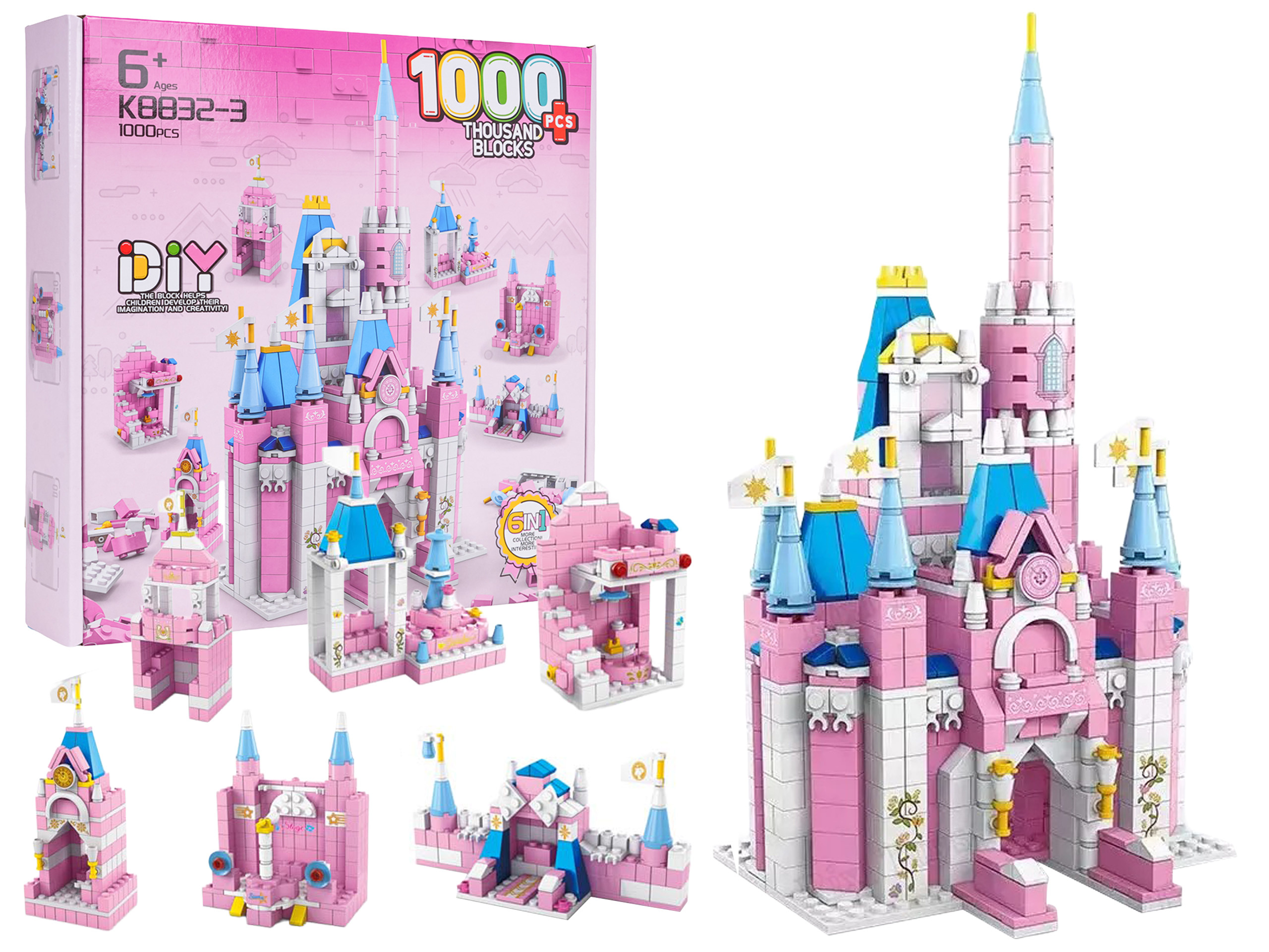 | Vysoce kvalitní stavební kostky pro děti od šesti let. Sada se skládá z 1000 prvků, ze kterých lze postavit velký růžový zámek pro princeznu nebo 6 malých zámků. Tato skvělá sada jistě upoutá pozornost svými detaily. Složitý zámek může být hračkou nebo ozdobou dětského pokoje.