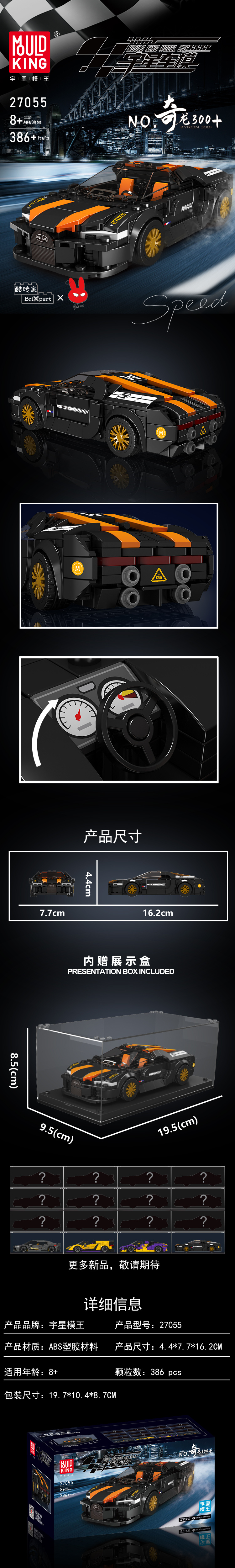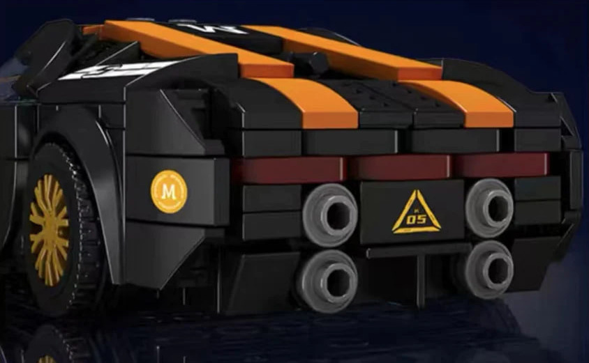 Sada 386 stavebních kostek pro vlastní sestavení černo-oranžového sportovního auta. Hračka určená pro děti od 8 let. Kostky a části autíčka jsou vyrobeny z vysoce kvalitního, odolného plastu ABS.