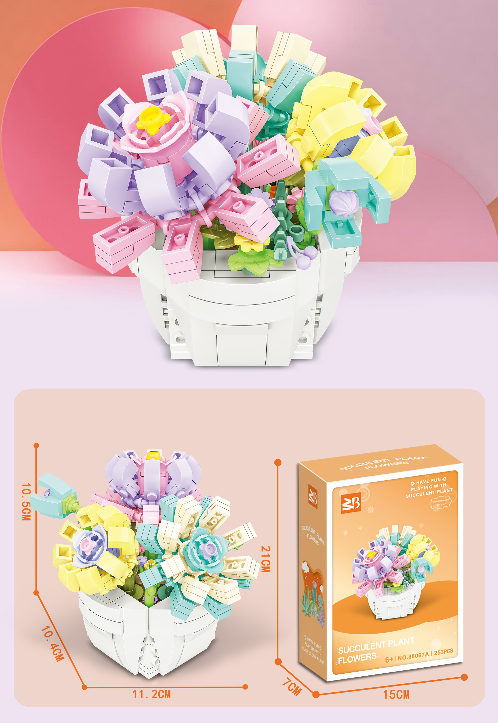 Vysoce kvalitní stavební kostky pro děti od šesti let. Sada se skládá z 253 prvků, ze kterých lze postavit květiny v květináči, a pak je darovat blízké osobě nebo je použít jako dekoraci. Tato nádherná kompozice květin vytvořená z kostek jistě upoutá pozornost svými detaily.