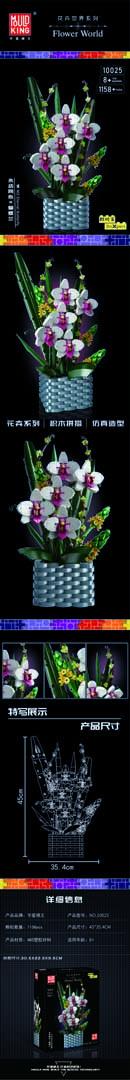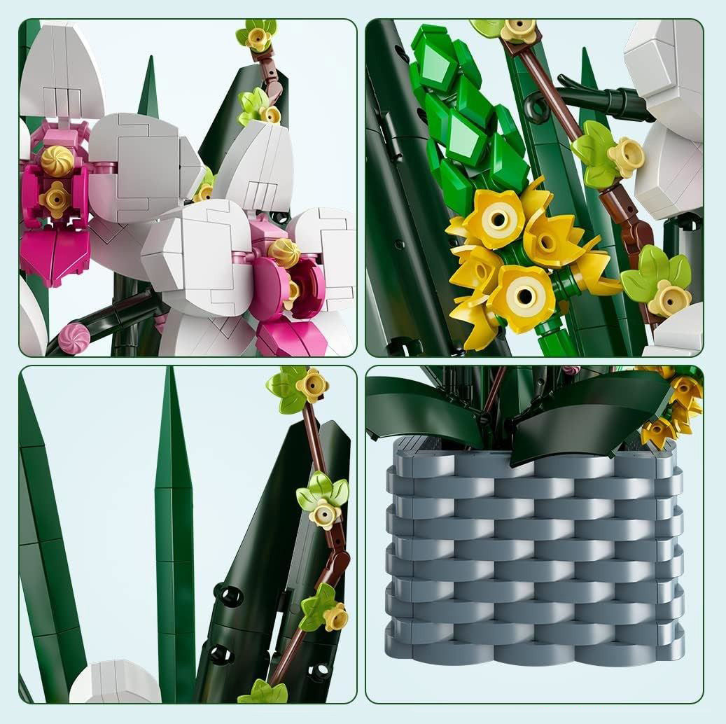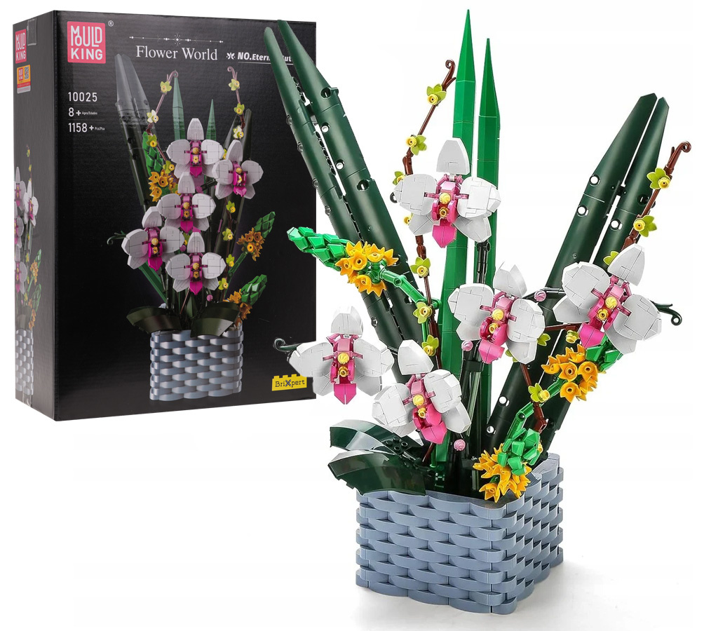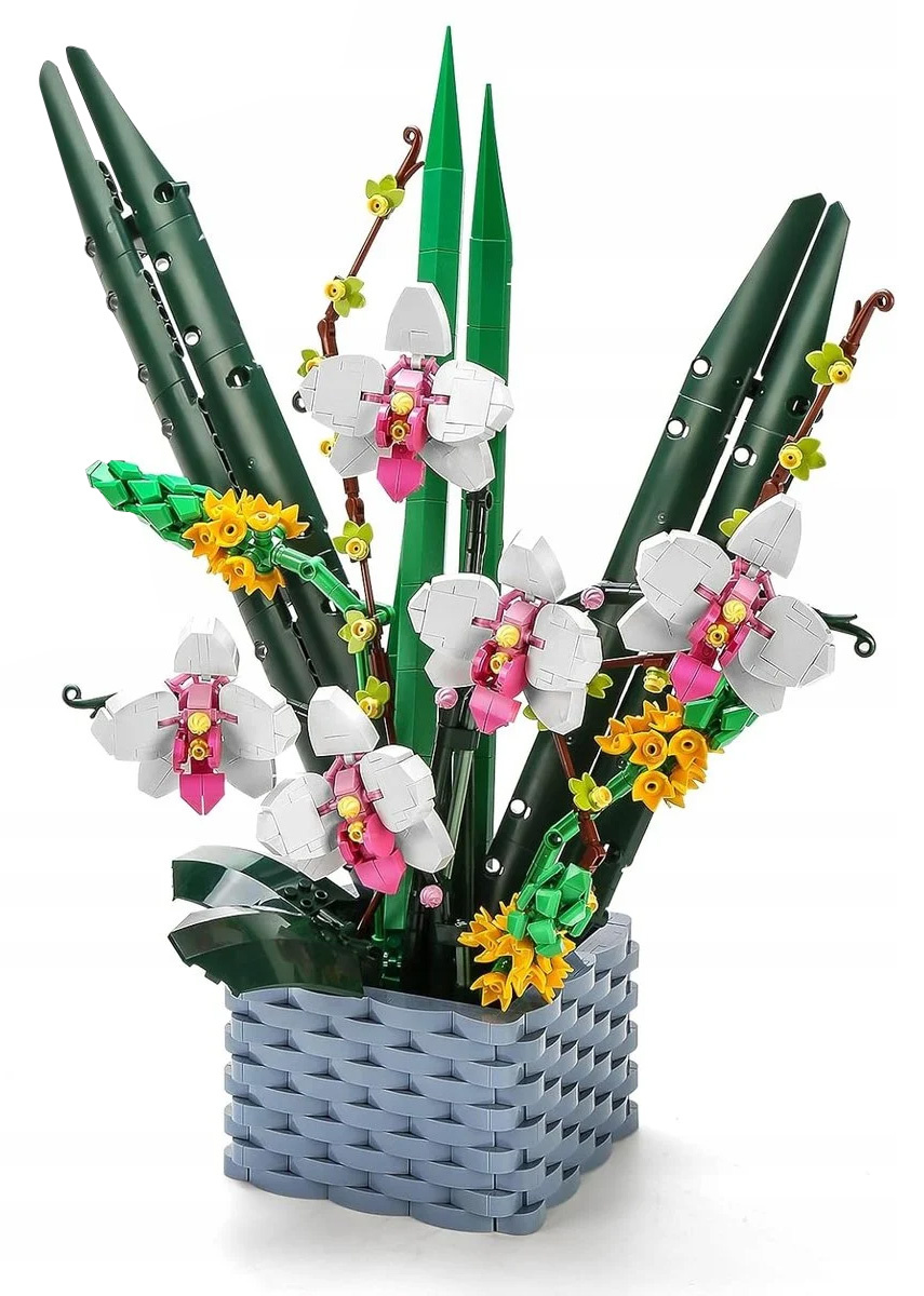Sada 1158 stavebních kostek pro vlastní vytvoření kompozice květin s květináčem. Hračka určená pro děti od 8 let. Kostky a prvky byly vyrobeny z vysoce kvalitního plastu. Sada realisticky zobrazuje tvary a barvy skutečných rostlin, m. in. orchidejí. Možnost uspořádání květin, listů a stonků podle vlastního nápadu. V sadě je přiložen obrazový návod. Skládání stavebních kostek rozvíjí u dětí manuální dovednosti, prostorovou představivost a trpělivost.