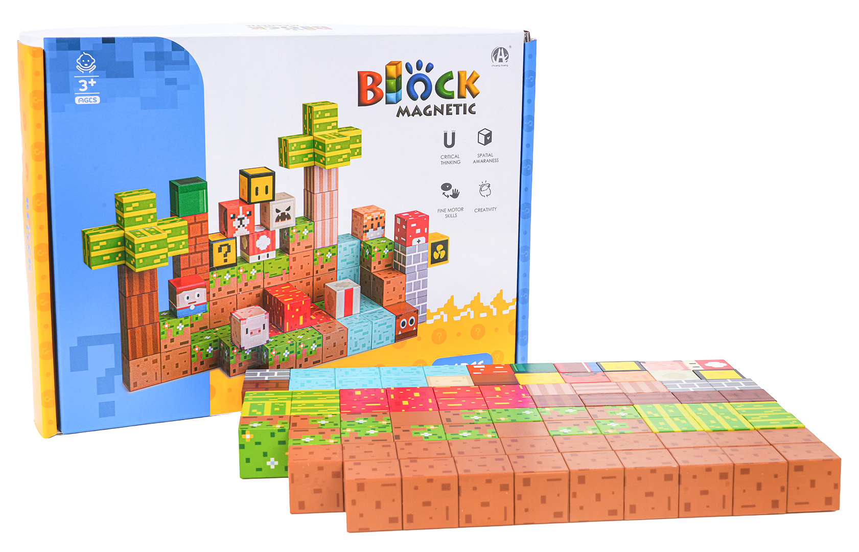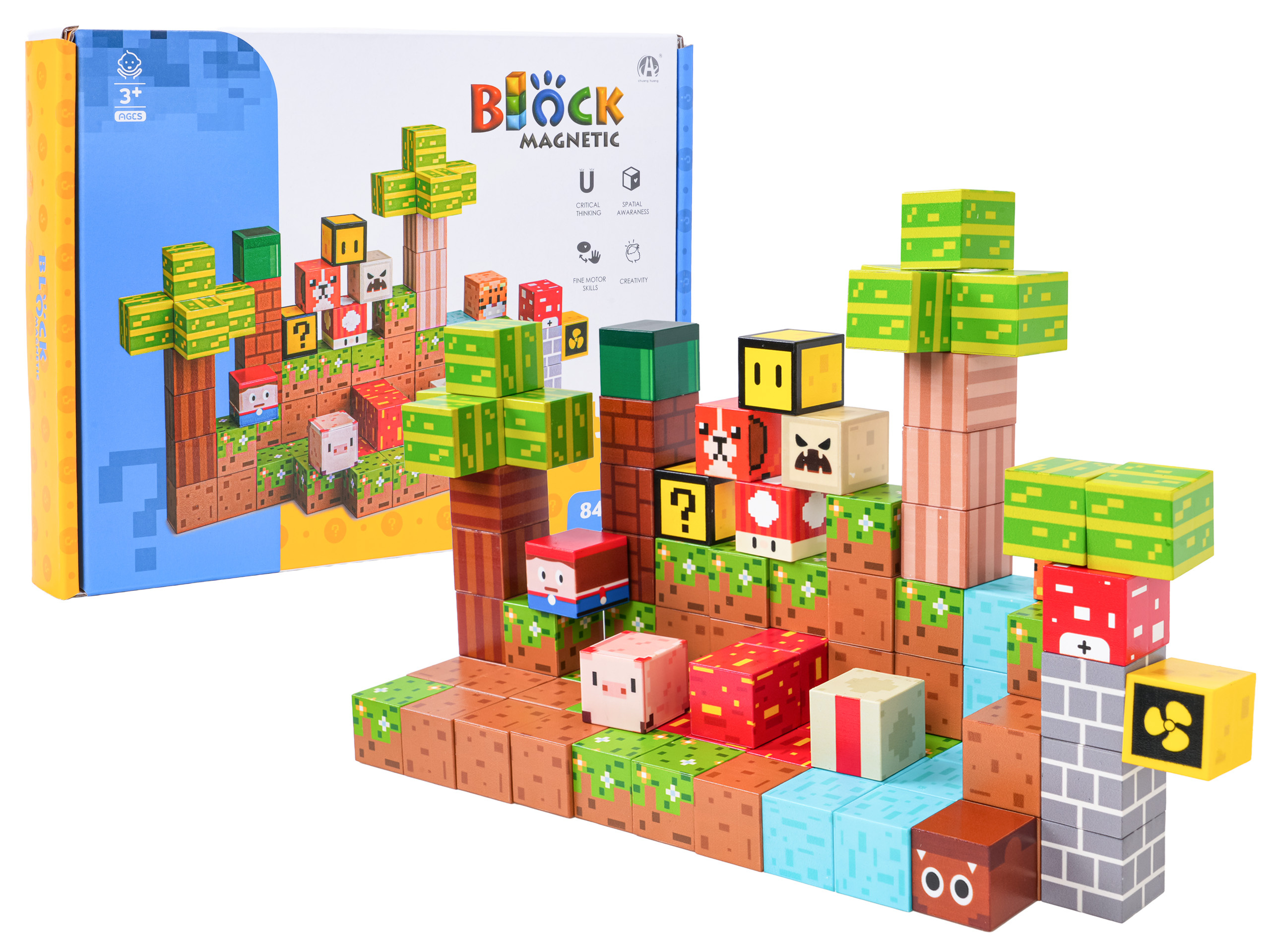 Sada 84 barevných kostek, magnetických 3D kostek pro děti od tří let. Magnetické kostky jsou vyrobeny z nejkvalitnějších materiálů v živých barvách. Lze z nich postavit různé konstrukce. Neodymové magnety velmi pevně drží, vytvářejí stabilní konstrukci. Skládání kostek učí logickému myšlení a procvičuje ruce dětí.