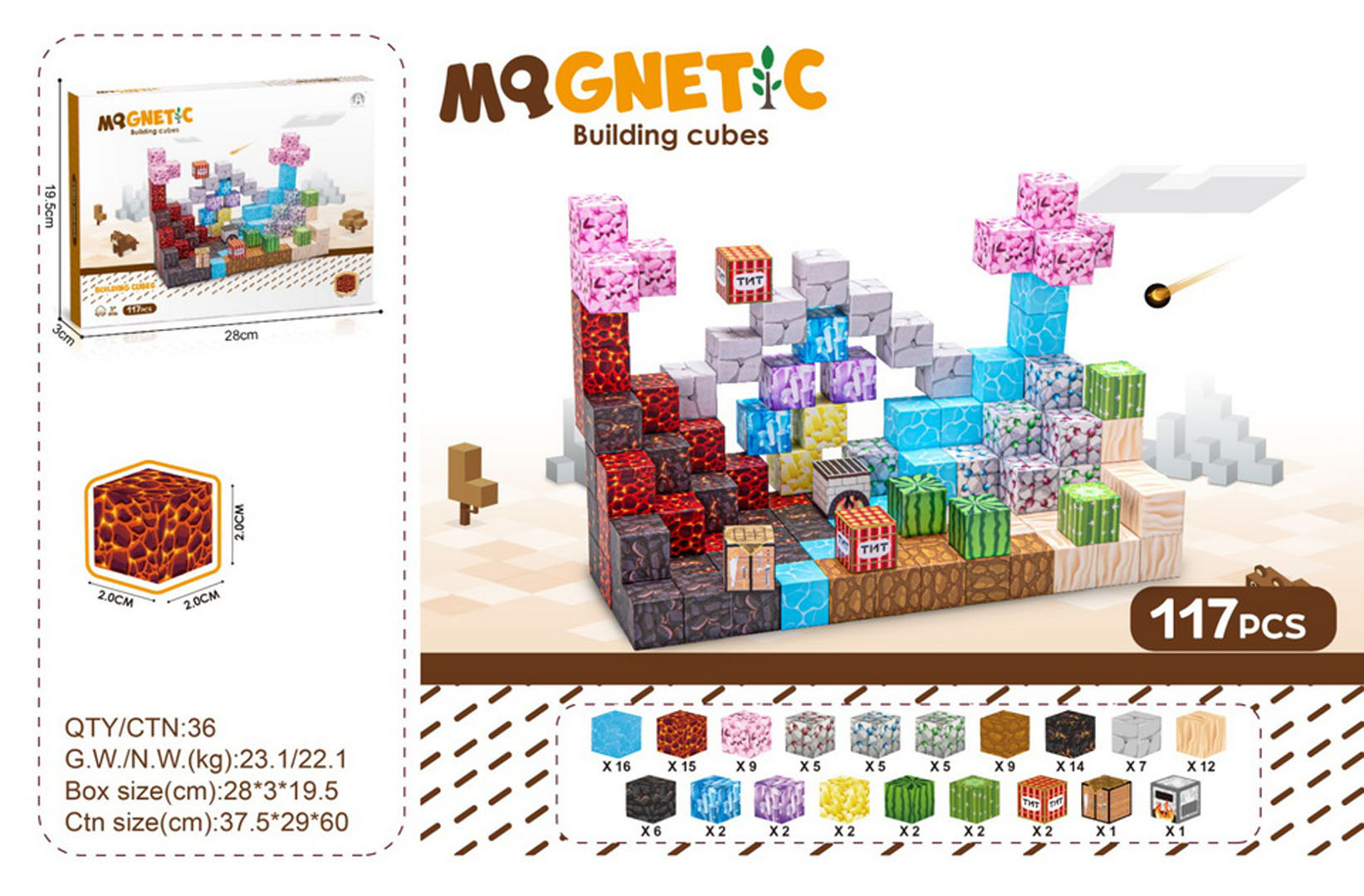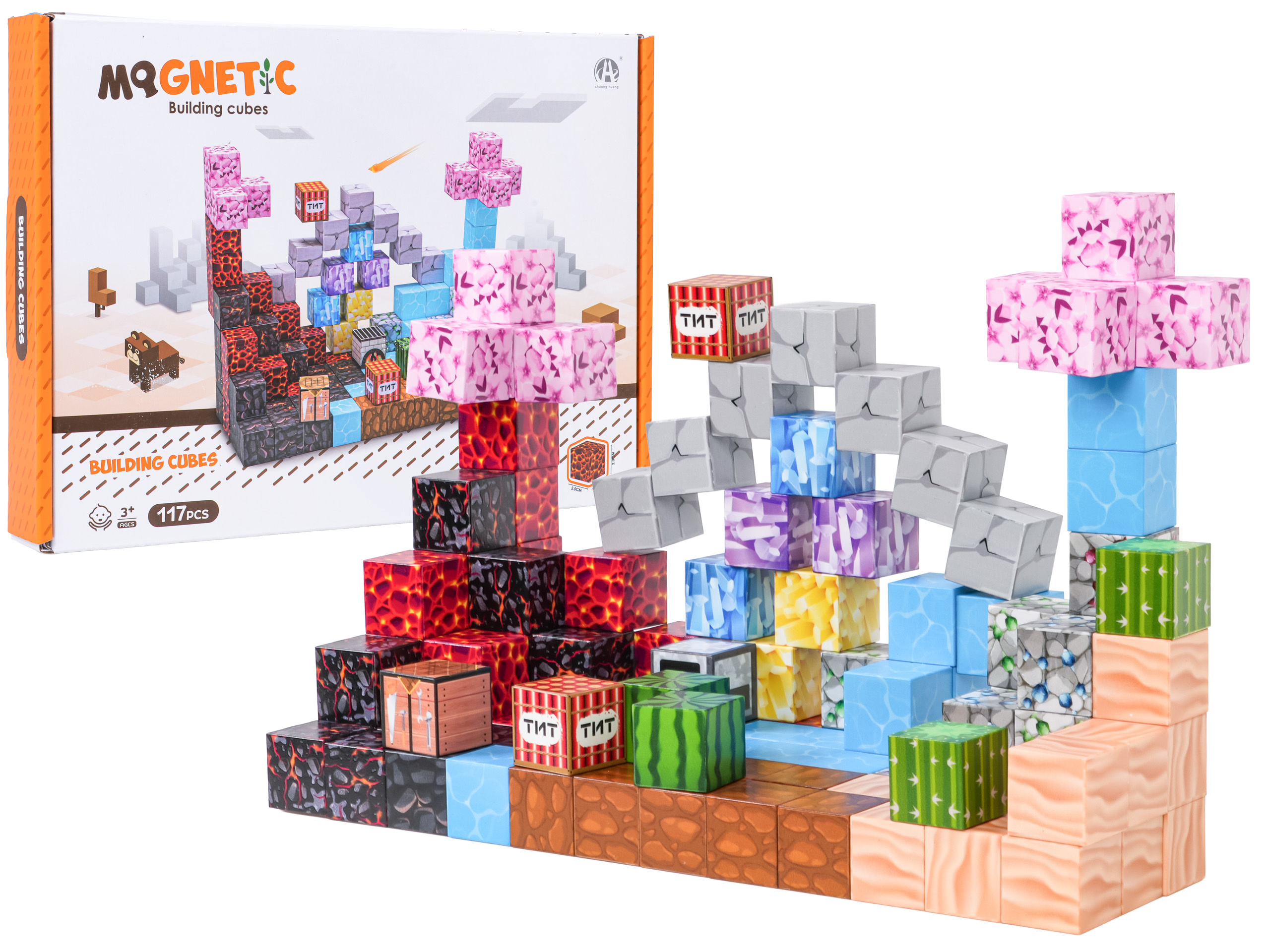 Sada 117 barevných kostek, magnetických 3D kostek pro děti od tří let. Magnetické kostky jsou vyrobeny z nejkvalitnějších materiálů v živých barvách. Lze z nich postavit různé konstrukce. Neodymové magnety velmi pevně drží, vytvářejí stabilní konstrukci. Skládání kostek učí logickému myšlení a procvičuje ruce dětí.