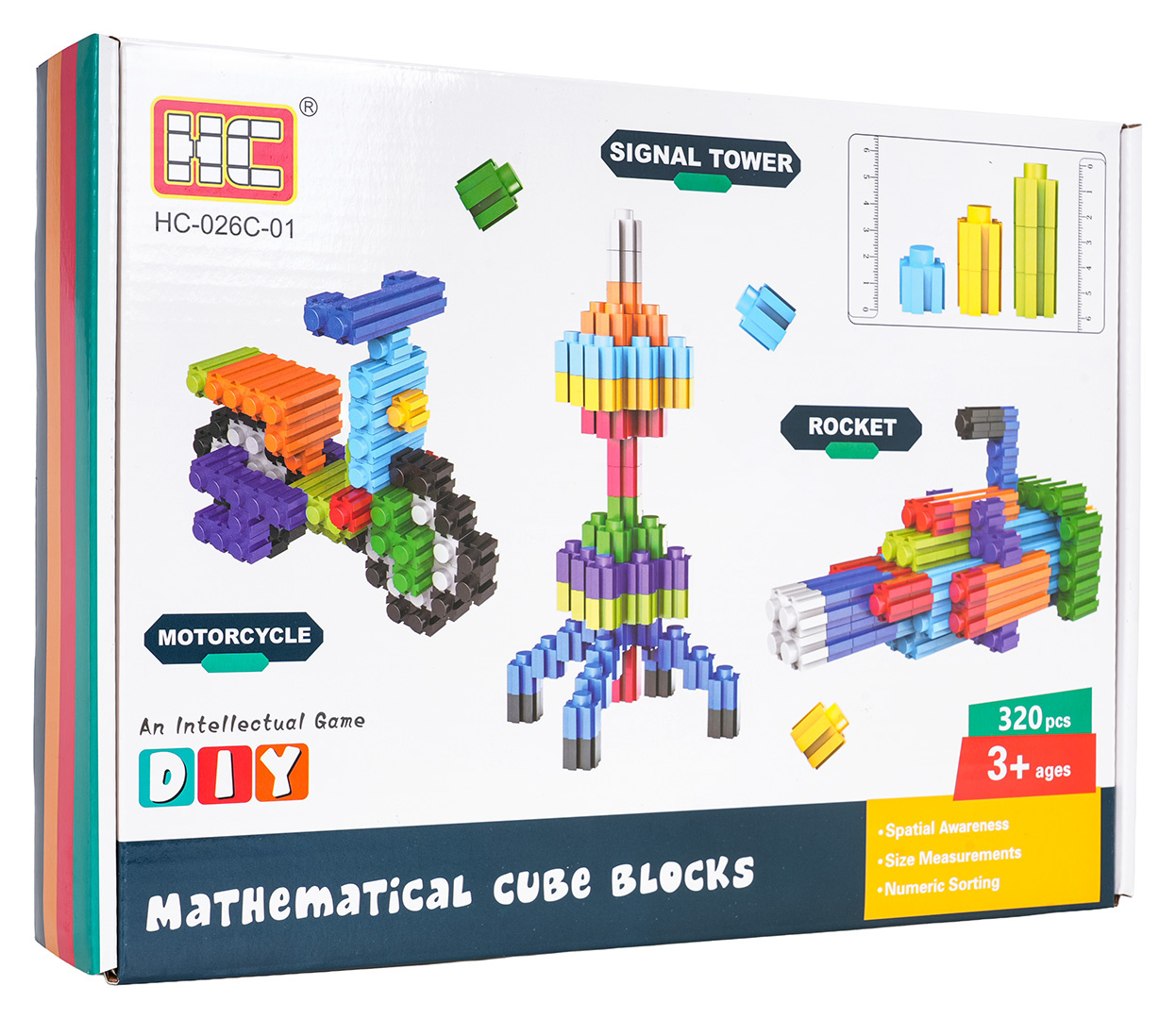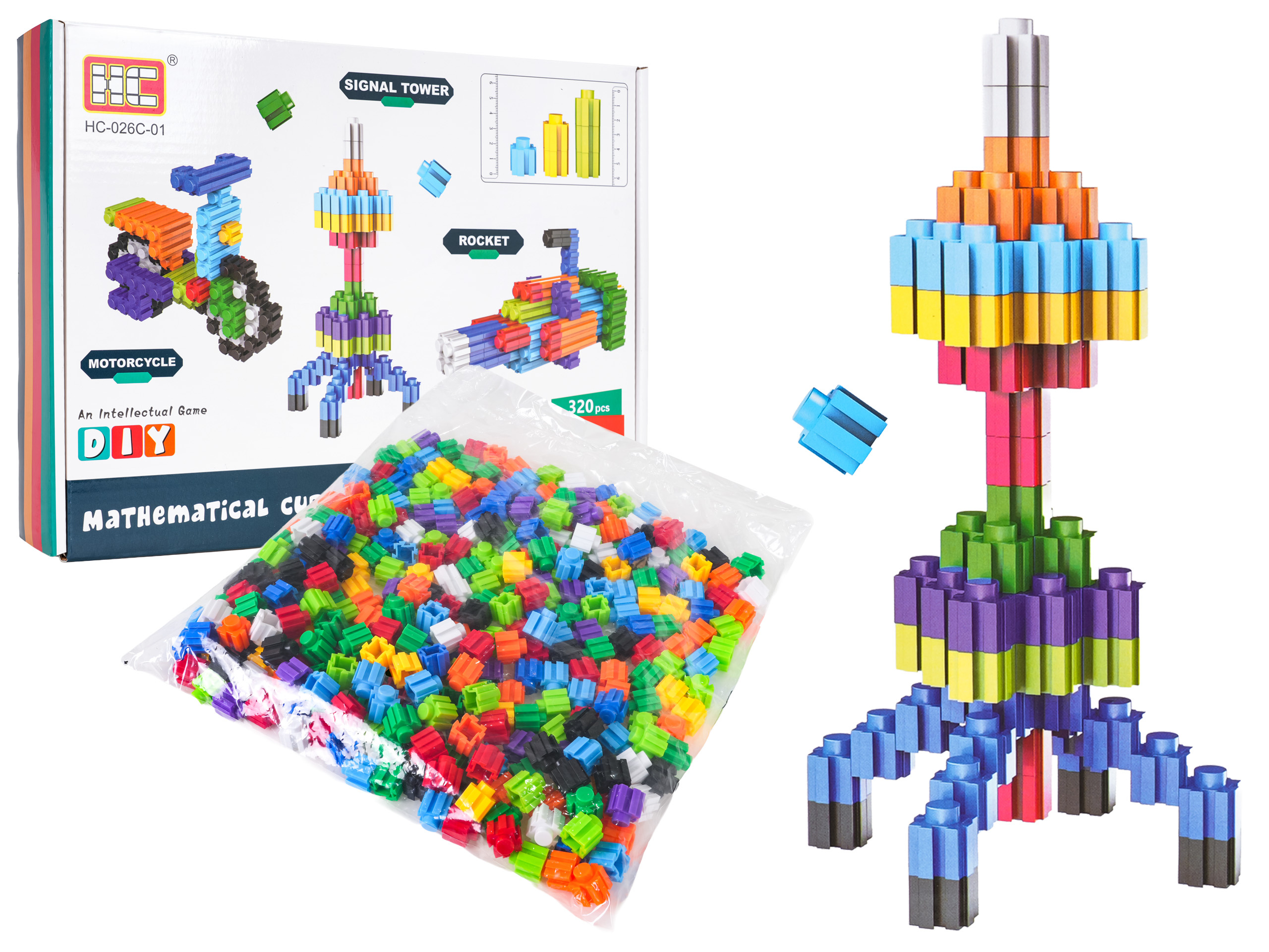 | Sada kreativně-vzdělávacích kostek pro děti od tří let. Sada se skládá z 320 prvků, ze kterých může dítě postavit různé konstrukce. Skládání kostek STEAM rozvíjí kreativitu, kauzální myšlení a schopnosti řešení problémů. Dítě si rozvine schopnost plánování a prostorové vizualizace. V sadě se nachází obrázkový návod s příkladovými konstrukcemi k sestavení. Kostky se snadno spojují a vytvářejí stabilní konstrukce. Každý prvek sady je vyroben z materiálů bezpečných pro děti.