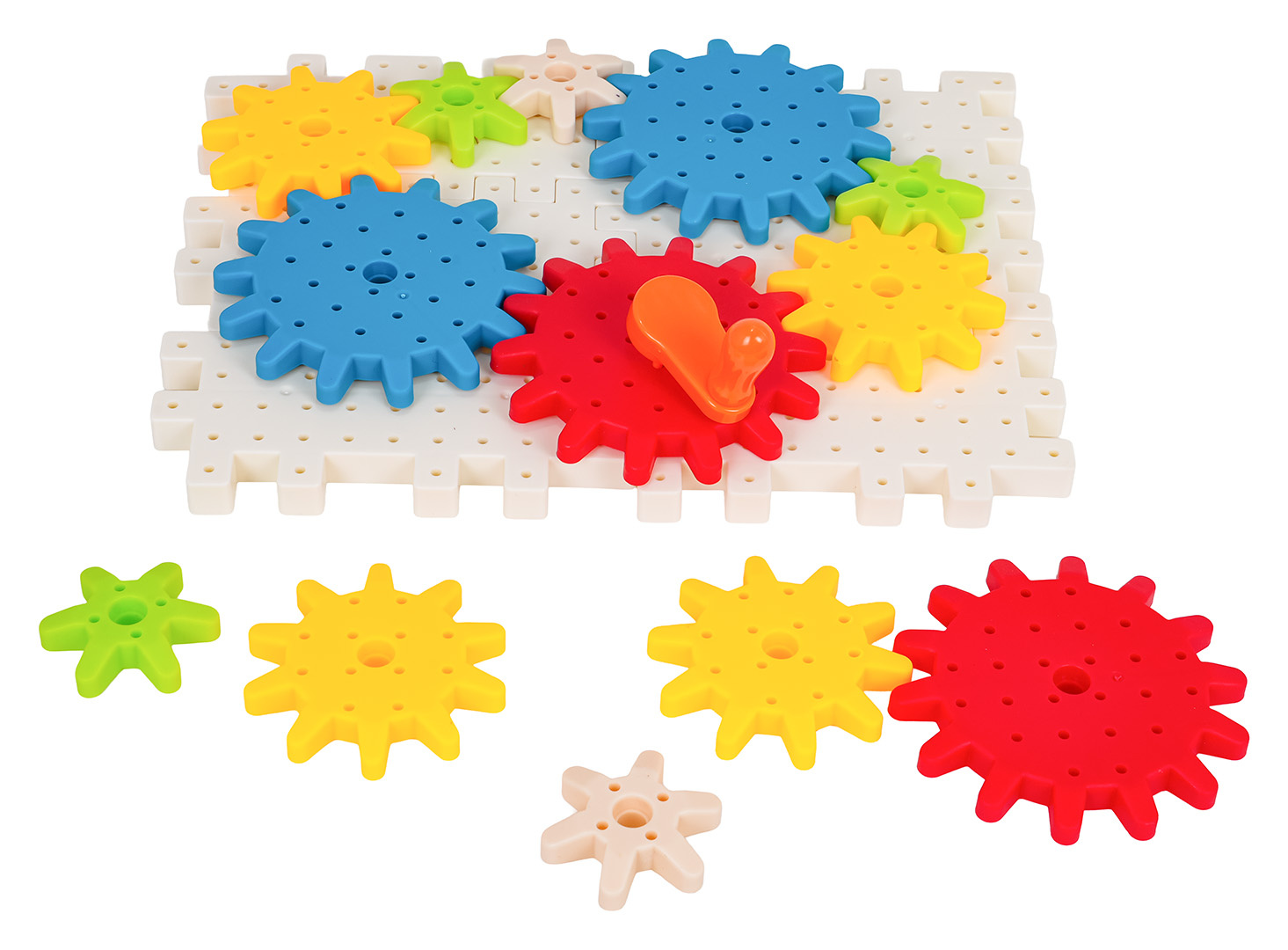 Sada kreativně-vzdělávacích kostek pro děti od tří let. Sada se skládá z 33 prvků, ze kterých může dítě postavit různé konstrukce. Skládání kostek STEAM rozvíjí kreativitu, kauzální myšlení a schopnosti řešení problémů. Dítě se naučí, jak jednotlivé prvky ovlivňují celkovou konstrukci. Otáčení jedním ozubeným kolem uvádí do pohybu ostatní kola, což v dítěti vzbuzuje zvědavost a zájem. Dítě si rozvine schopnost plánování a prostorové vizualizace.