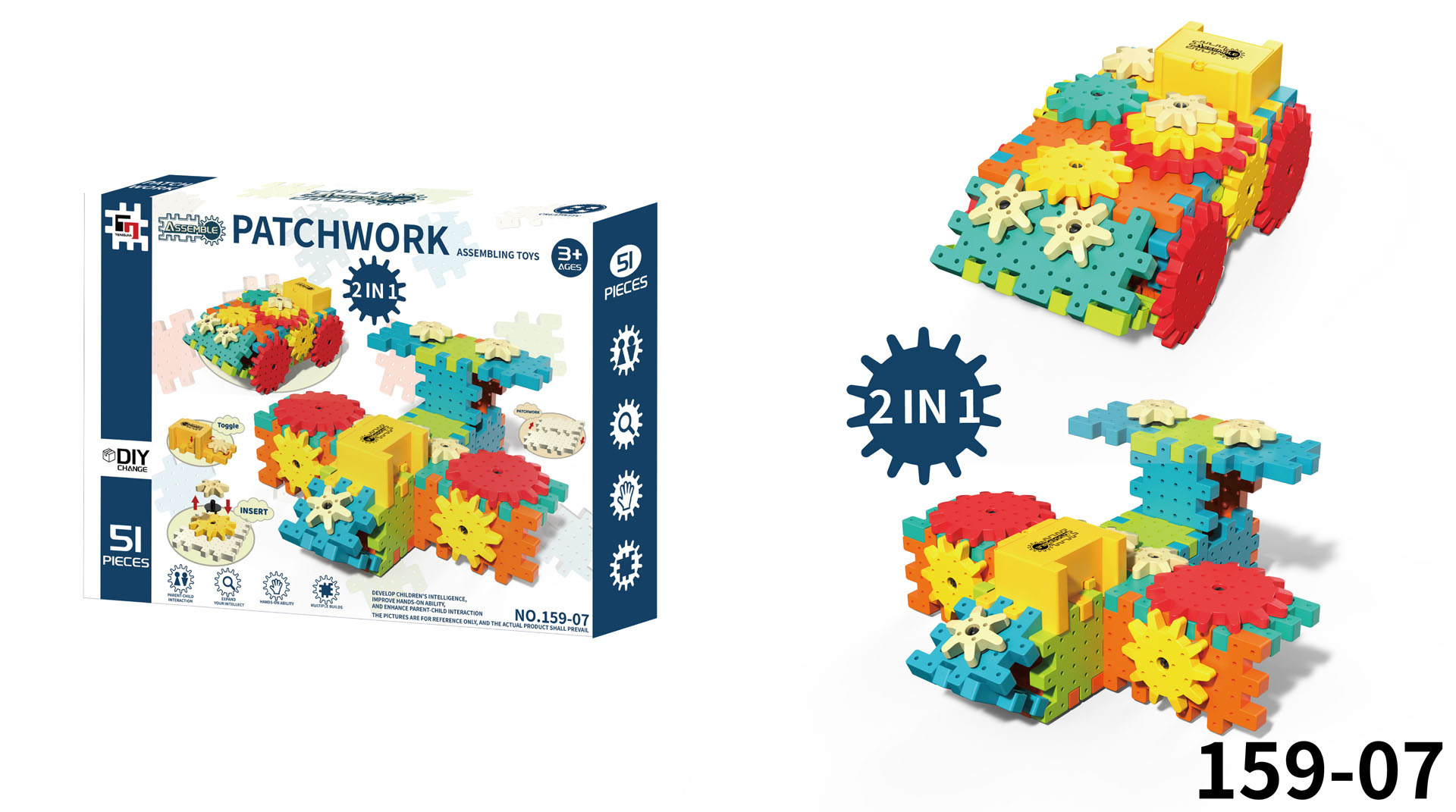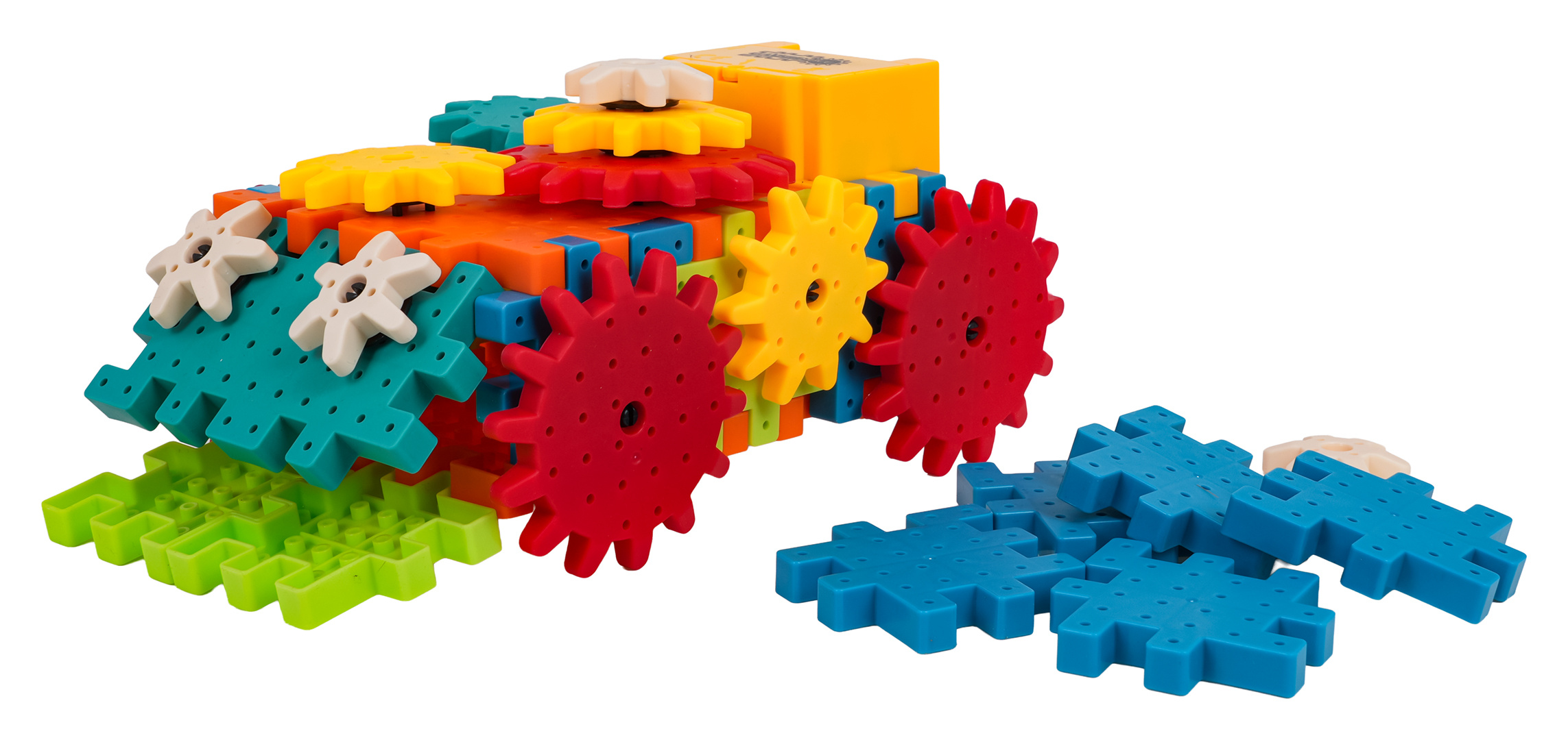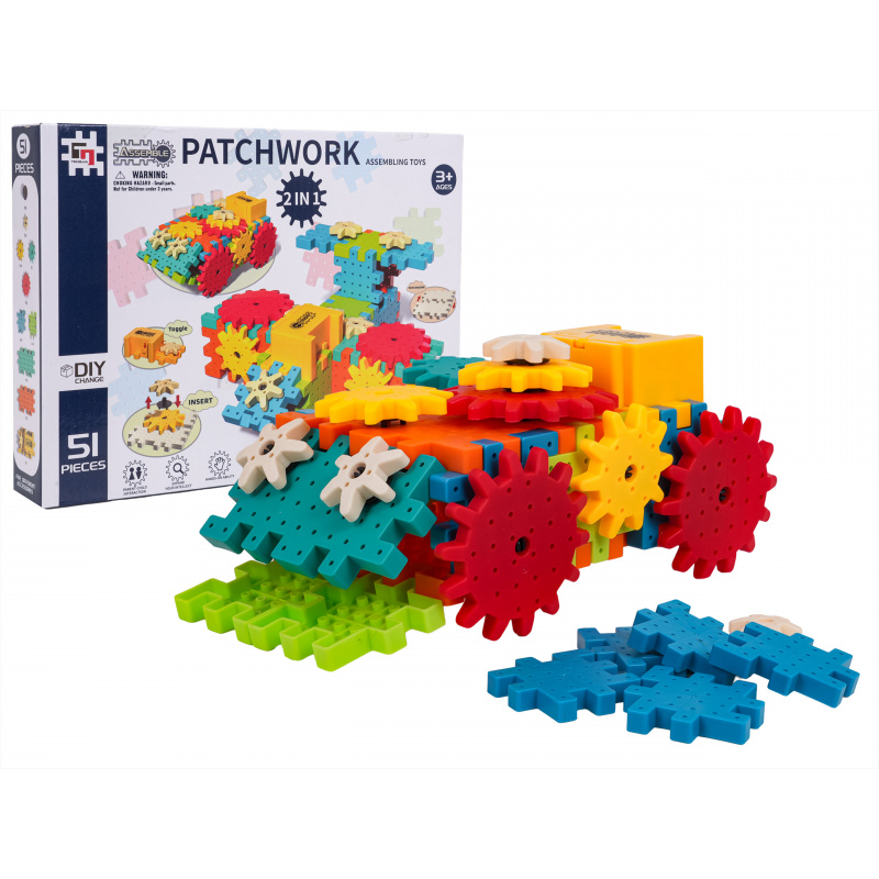 Sada kreativně-vzdělávacích kostek pro děti od tří let. Sada se skládá z 51 prvků, ze kterých může dítě postavit různé konstrukce. Skládání kostek STEAM rozvíjí kreativitu, kauzální myšlení a schopnosti řešení problémů. Dítě se naučí, jak jednotlivé prvky ovlivňují celkovou konstrukci. Otáčení jedním ozubeným kolem uvádí do pohybu ostatní kola, což v dítěti vzbuzuje zvědavost a zájem. Dítě si rozvine schopnost plánování a prostorové vizualizace. Sada obsahuje motorek napájený bateriemi 2 x AA 1,5V (baterie nejsou součástí balení).